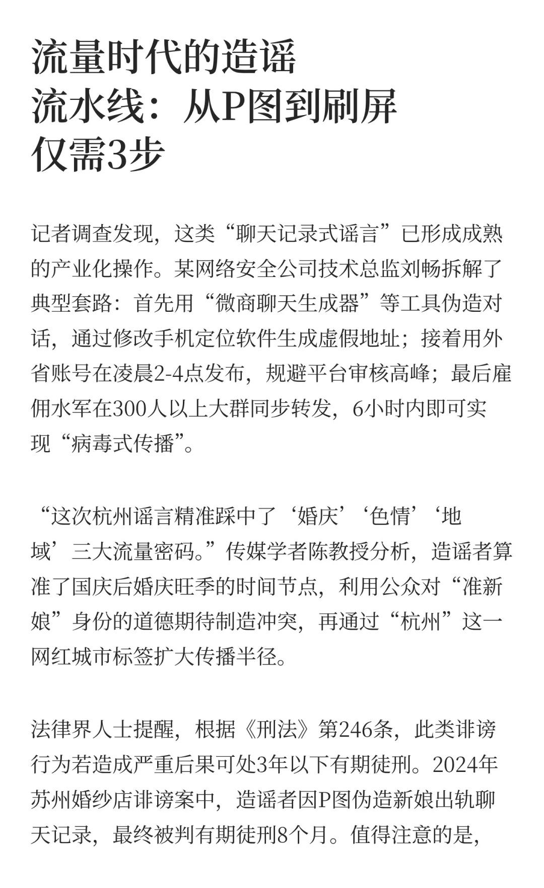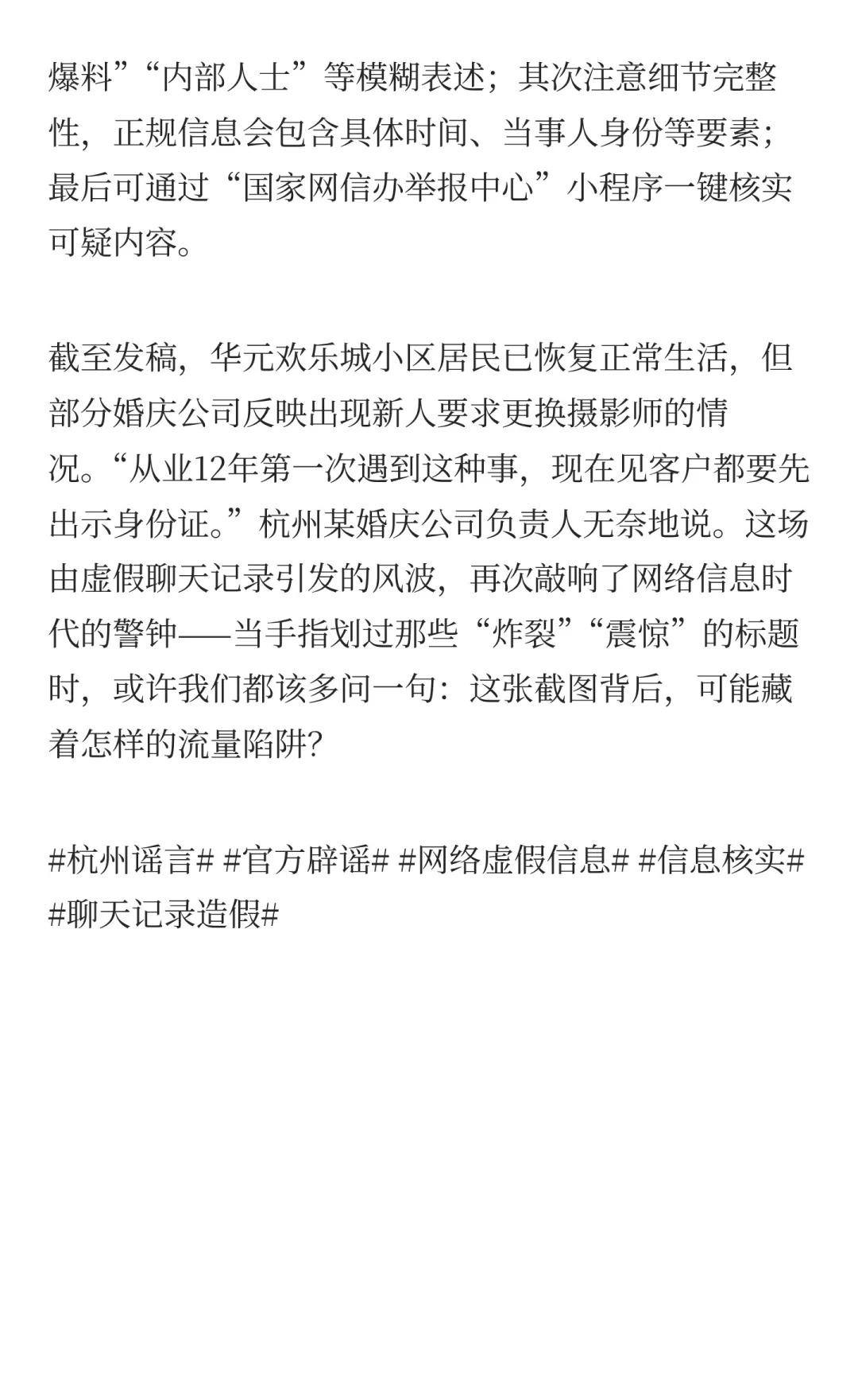 杭州新娘与摄影师聊天记录疯传?官方紧急辟 杭州谣言 官方辟谣 网络虚假信息 信息核实 聊天记录造假