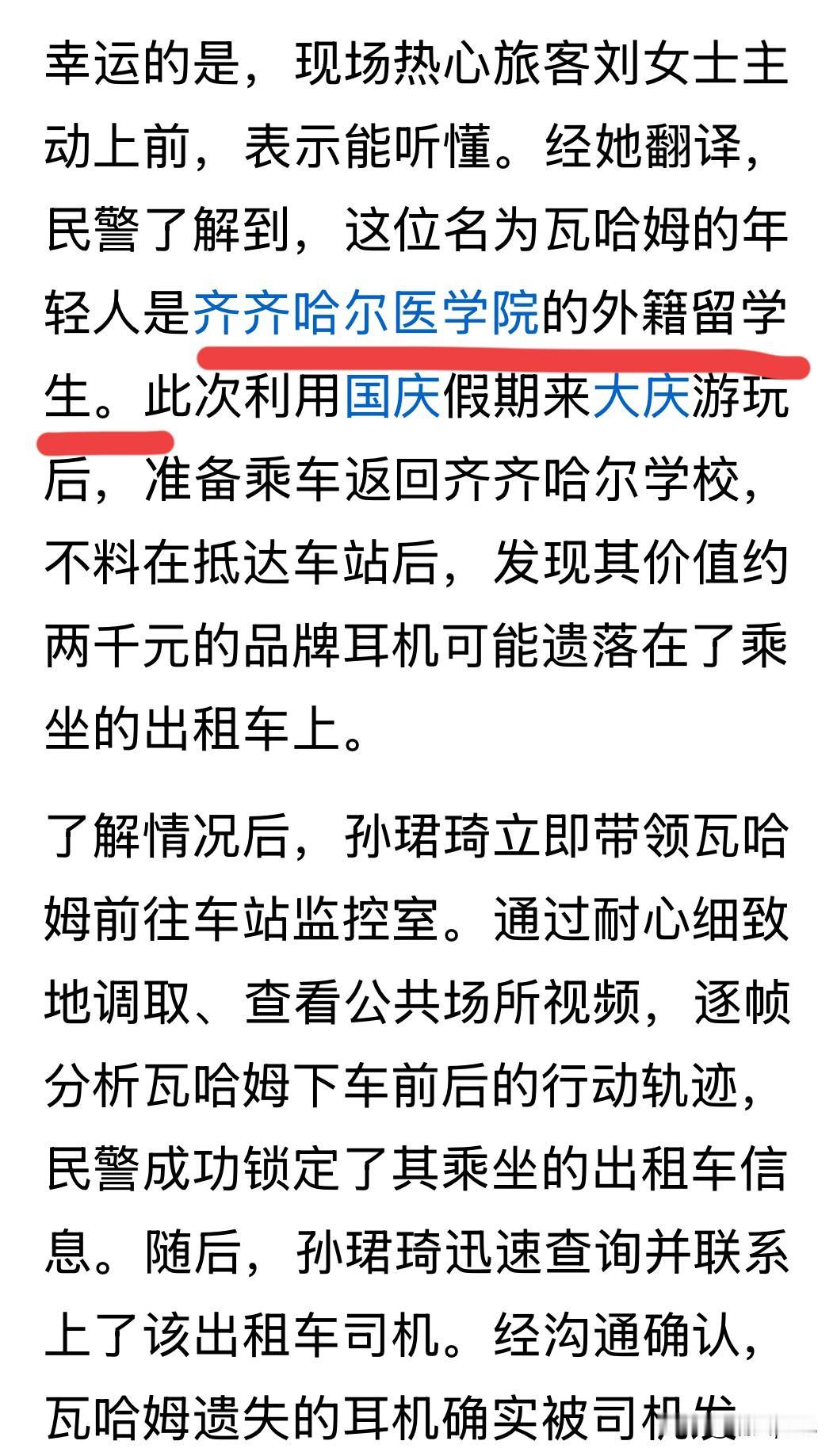 一条外籍留学生丢失耳机的新闻引起了人们热议。一个外籍留学生在中国居然不会中文,这一点令人惊讶。 这条新闻有很多看点。刚开始这个留学生向警察说“萨拉姆,普利斯”。听到“萨拉姆”就大概知道这个留学生可能来自非洲或中东了。要是说个“哈啰”,还可能是欧美留学生,说“萨拉姆”,大概是非洲中东的学生。 这里外籍留学生见到警察说的完全是外语,双手不断比划,语言不通。那这意思就是,这个外籍留学生见了警察就一个劲使用外语说话。 这很难想象,在美国一个外国留学生不会说英语,见了警察狂飙外语,这是一个什么场景。 后面才发现原来是医学院的外国留学生。这是一点中文课都不上吗?起码的“你好”“谢谢”总会吧。 到最后,辛苦半天帮他找到价值2000元的耳机,大概是苹果耳机才这么贵吧。找到了之后,这名外籍留学生“连连用中文道谢”。这时候这个外籍留学生就会汉语了?这真令人感到惊讶。 外籍留学生要明白,他们需要学习汉语,这是基本的尊重。外籍留学生需要做出贡献才能得到认可。
