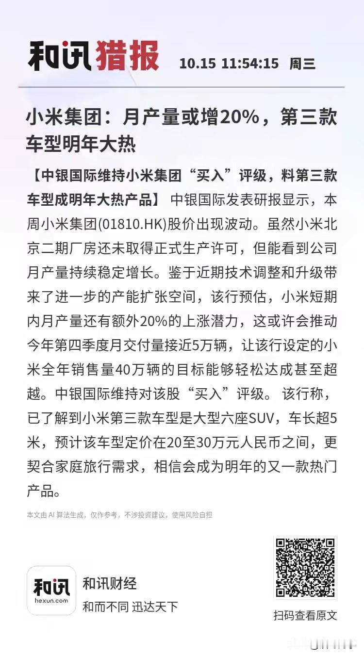 小米第一台增程车要来了,估计叫YU9…… 就在近期,雷军带领团队跑到新疆去做汽车测试,表面上是测试小米YU7的续航、防晒、充电等性能,实际上还有一个非常重要的测试,就是即将在明年发布的6座大型SUV增程车,代号昆仑~小米YU9!该款车车长超5米,很有可能搭载超大的电池,要与市面上的增程车拉开一个维度的距离!明年上市肯定又会卖爆,让我们拭目以待吧!