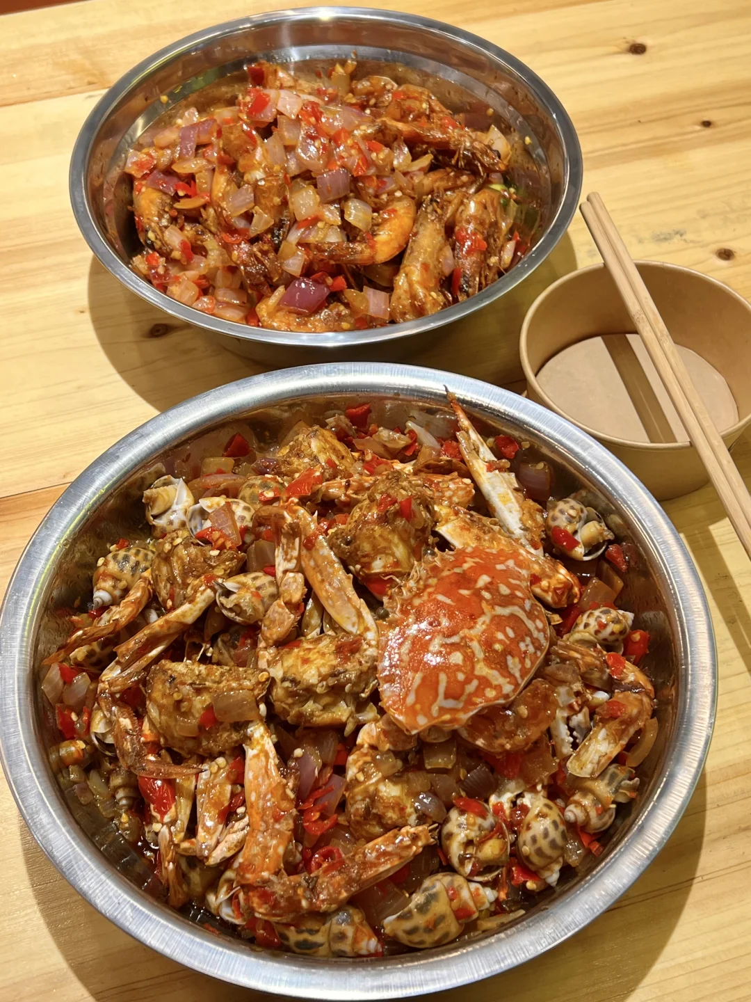 芥末梭子蟹花螺、盆盆虾蟹!!全都是超大一份!!蟹肉超饱满!!!吃完还要“嗦”手指的程度!还有满满都是料的海鲜锅!太适合现在长沙的天气啦!!烧烤也不逊色哦!📍崔老板湘派海鲜档
