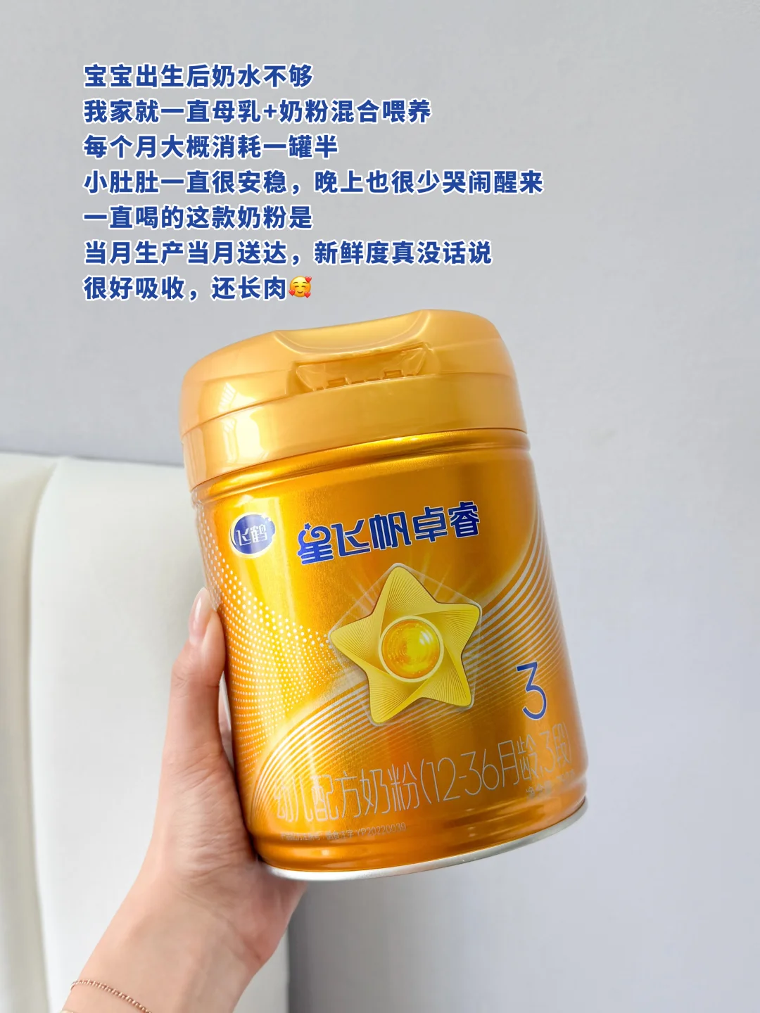 我家宝宝一直喝的都是飞鹤星飞帆卓睿,它是当月生产当月送达,比普通奶粉鲜活2倍,我家宝宝喝着吸收很好,长肉也很快。