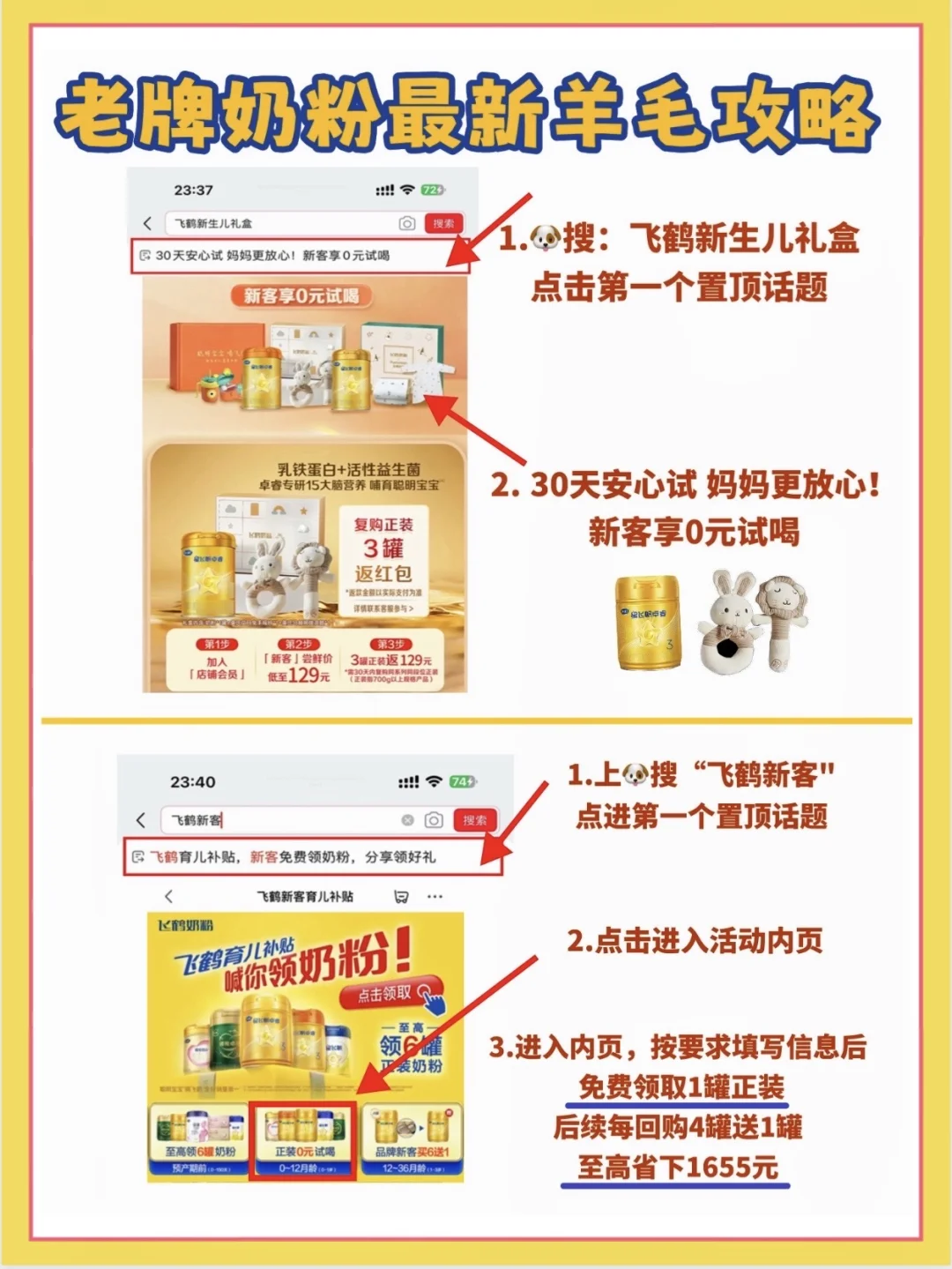 👉京东搜“飞鹤新客“点置顶话题进入页面