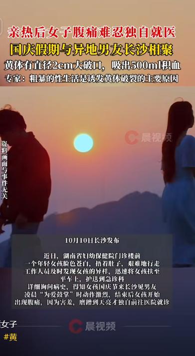 “悲剧还是发生了!”湖南,一女孩假期到长沙见男友,晚上两人亲热完后,女孩肚子感觉到明显疼痛,但并没有当回事,直到早上才就医,一检查发现黄体破裂,腹腔全是积血,再晚来一步可能有生命危险!之后医生的一句话让女孩羞红了脸! 王女士趁着假期赴长沙与男友相聚,亲密相处后,她的腹部突然传来剧烈疼痛 ,这个本该立即警惕的信号,却因难以启齿的羞怯被她强行压制,独自忍受了一整夜。 直到次日清晨,她已面色苍白、无法动弹,才在他人搀扶下急诊就医。当医生提及病情与亲密行为相关时,她的羞愧反应,连同男友起初的忽视,揭开了一个普遍存在的健康认知盲区,许多人对生理常识的匮乏,以及对性健康话题的羞耻感,正悄悄放大健康风险。 经检查,王女士被确诊为卵巢黄体破裂,医生紧急手术吸出盆腔积血并进行修补,才让她脱离生命危险。 正如网友后续科普所言,不仅亲密行为中若动作不当可能诱发,就连下雨天收伞时,若伞柄不慎撞击腹部这类外力冲击,也可能导致黄体破裂。 但现实中,像王女士这样因 “羞于谈论” 延误就医的情况并不少见,不少人将涉及隐私的健康问题等同于 “尴尬话题”,即便身体发出警报,也选择硬扛,最终错过最佳治疗时机。 事件中男友的 “不重视”,折射出亲密关系里健康沟通的缺失。许多情侣在相处中,往往忽视了 “共同守护健康” 的责任,既不主动了解伴侣的生理特点,也未形成 “身体不适及时沟通” 的意识。 事实上,卵巢黄体破裂并非 “难以启齿的病症”,而是育龄女性可能遭遇的常见情况,其危险程度与是否及时就医直接相关。 这一事件也提醒我们,生理常识不是 “隐私禁区”,破除对性健康的羞耻感,主动学习基础生理知识,是每个人的 “健康必修课”。 对此,你还有什么看法呢?