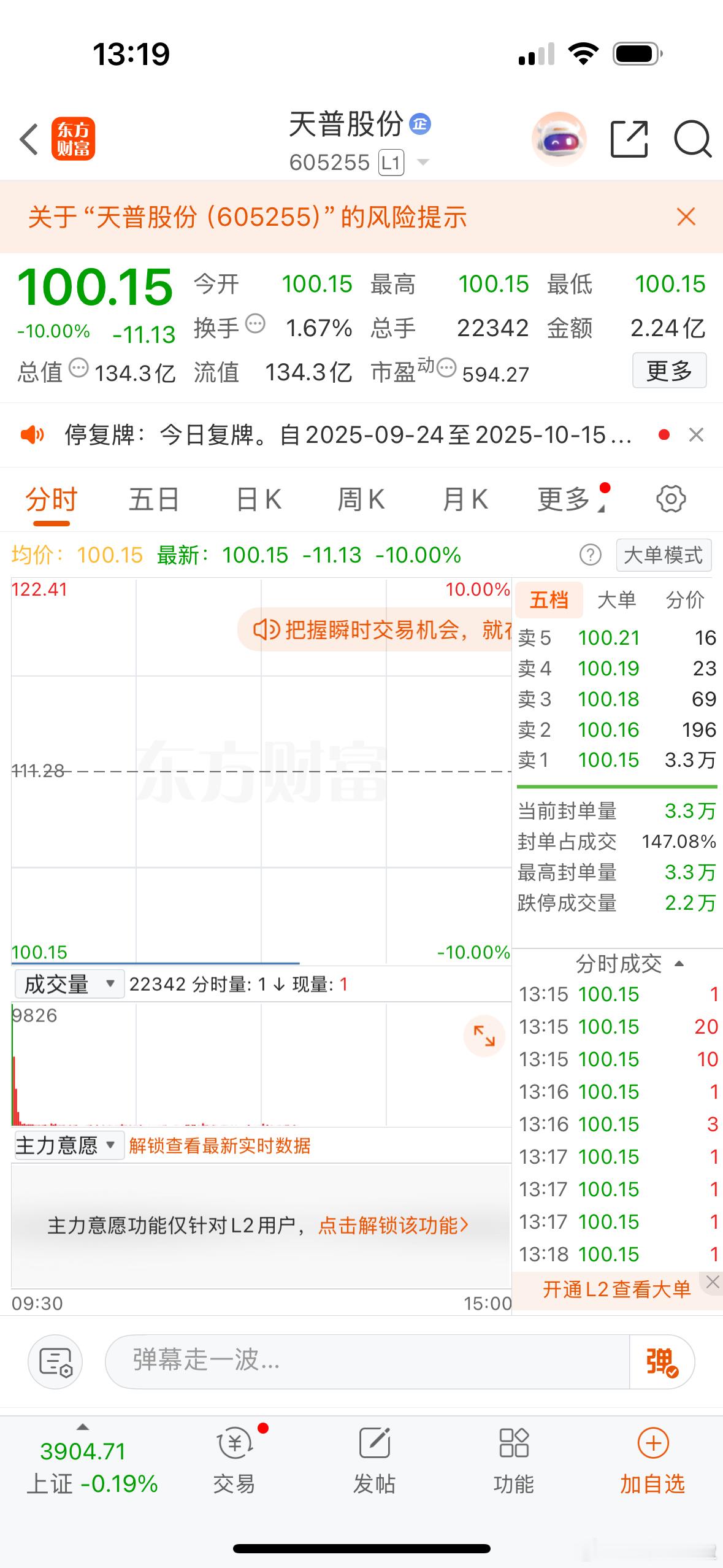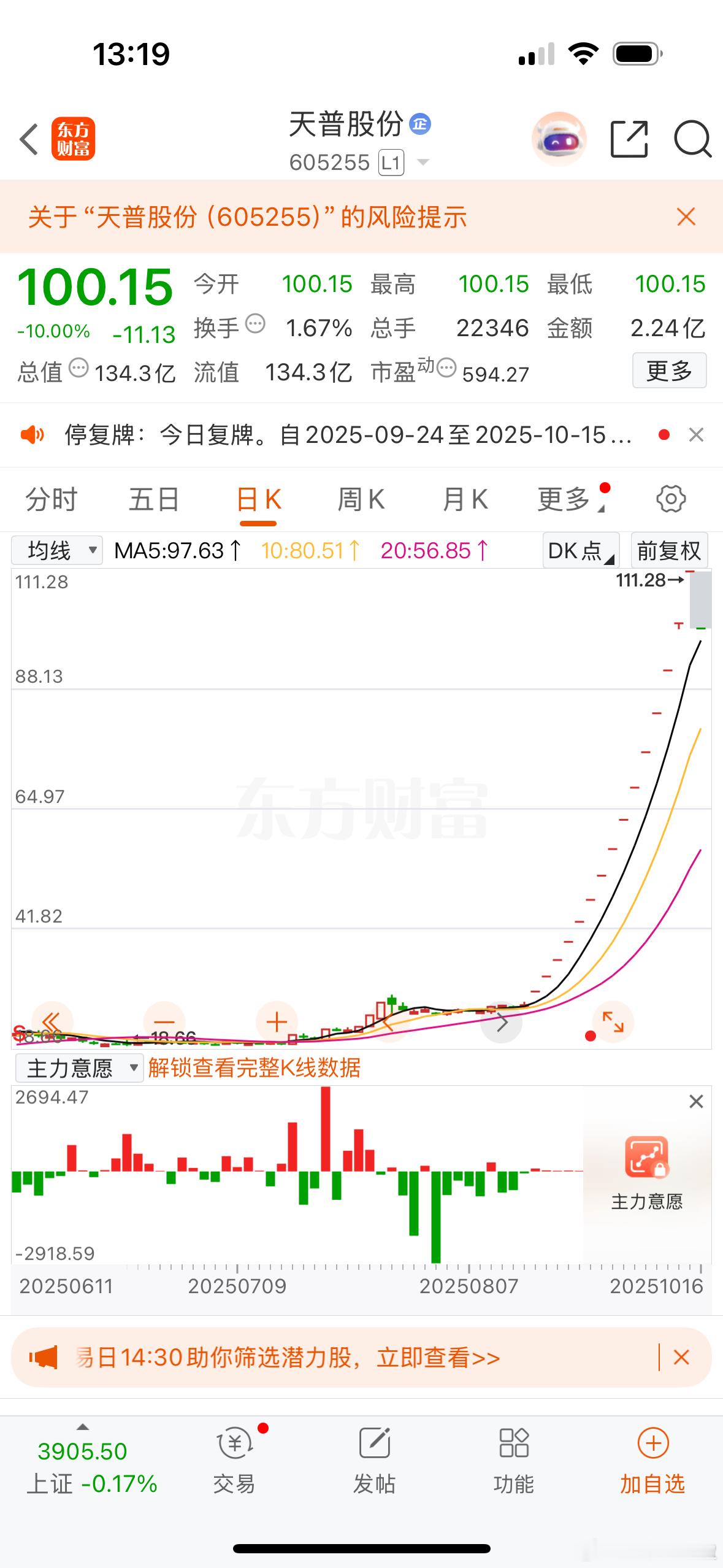 现在的最大问题是天普股份会跌多少个跌停板才能开板?[泪奔]