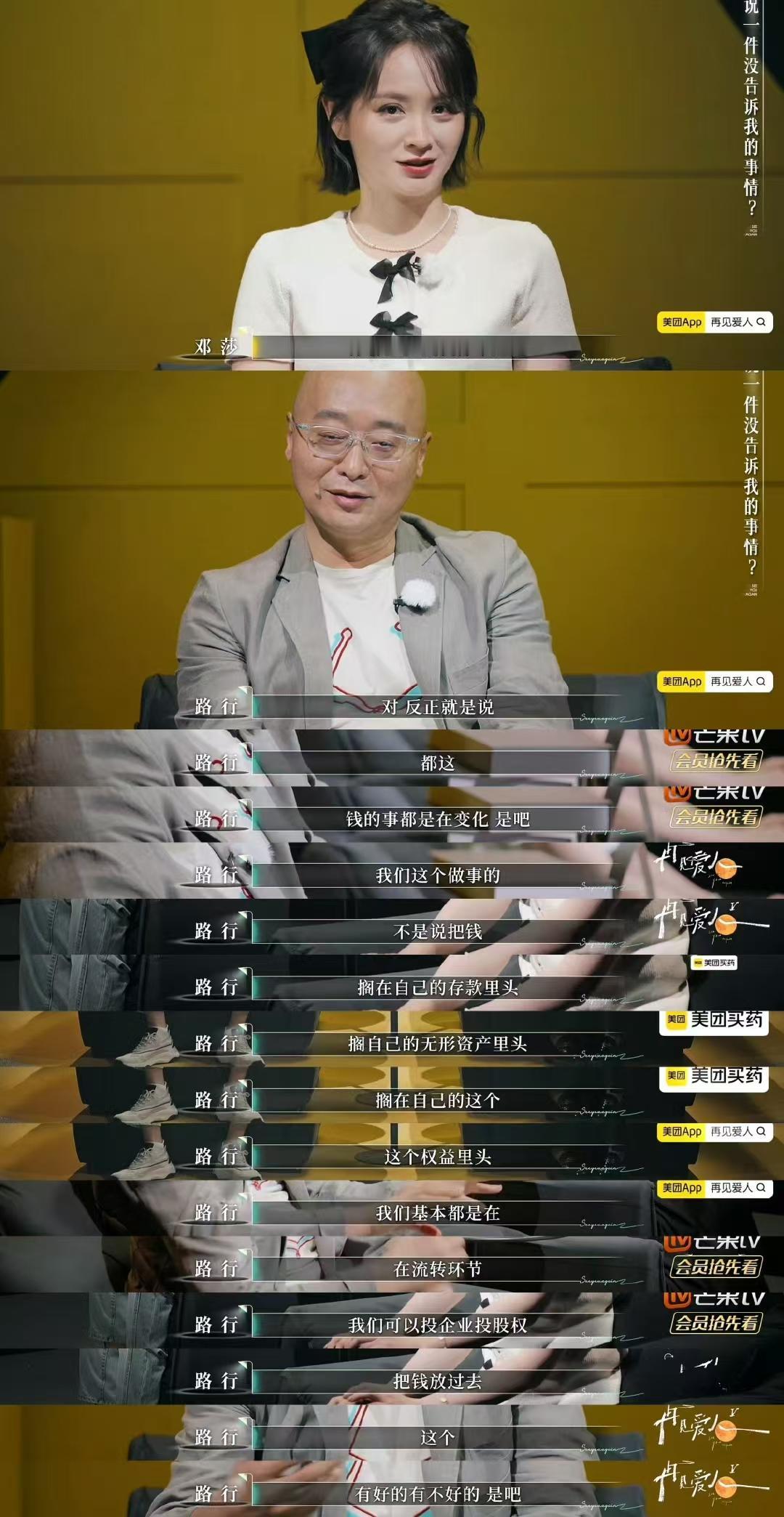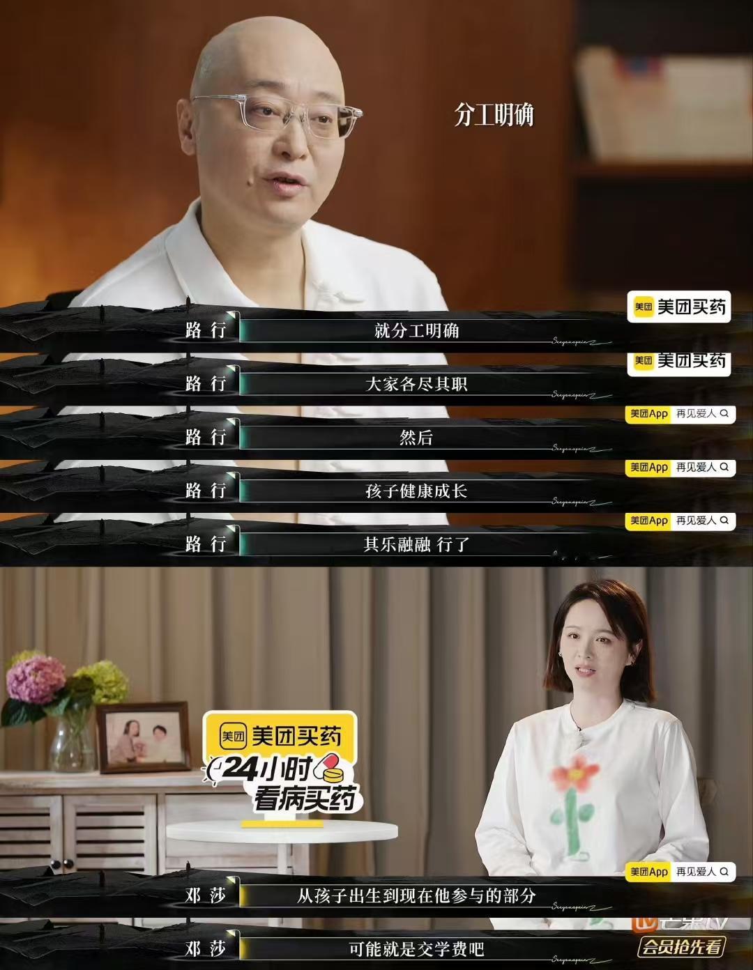 看惊所有人!“生儿子”三个字一出,邓莎眼眶瞬间红了,胡彦斌惊到嘴巴张大! 什么叫“无爱婚姻”,在邓莎和路行这里体现的淋漓尽致!邓莎出没出差,到哪出差,路行从来不关心,不在乎。孩子读书报什么班,他从来不去问,除了给学费,什么都甩手不管。面对这样的婚姻,虽然邓莎是住着豪宅,衣食无忧,但是在心灵上是孤独的。她自己知道在路行心中,她没有什么地位,但是那句“对两人最大的付出是生儿子”,还是击中了邓莎。 再看看胡彦斌的表情,连他作为同是男性都看不下去,理解不了路行如此坦然直白。有个疑问,为什么他们要把家丑放在荧幕上公开给大家看?难道又是为了流量然后直播带货吗?