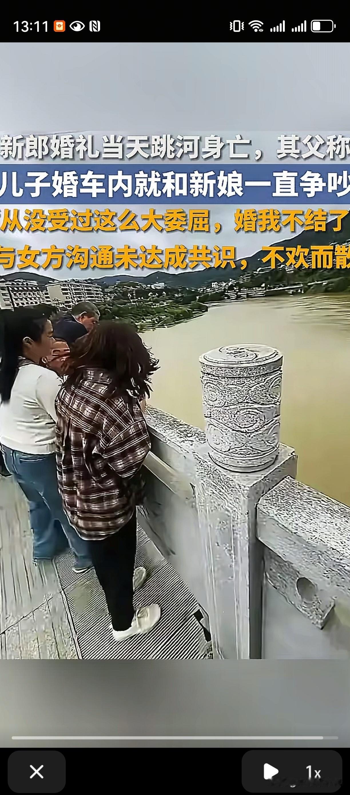 陕西跳河新郎周某父亲已经查到,儿子跳河前留下的最后一句话是: 从没受过这么大委屈,这婚我不结了! 新娘一家到现在都没有站出来给新郎周某家一个解释,让人家儿子死的不明不白的。 两人是高中同学,知根知底啊,又不是相亲认识的,既然因为一点琐事就吵成这样,说明感情还不稳定,为什么还继续往下走呢?分手,及时止损不行吗? 你看,结婚还真会死人! 新郎跳河 陕西新郎跳河 陕西婚礼跳河 婚礼前新郎跳河 婚礼小伙跳河 新娘跳河 新郎新婚前跳河