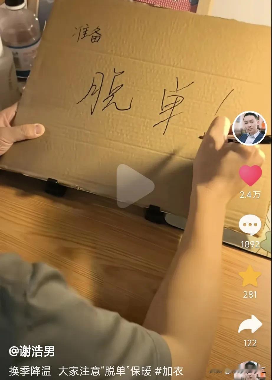 谢浩男为什么突然发“脱单”视频,难道他真的有女朋友了?最高兴的应该是老谢和许建华,当然还有一个人会不高兴。 谢浩男其实也知道发这个视频肯定会让大家误会,一说脱单,都以为谢浩男有女朋友了,而他却又说要换季了,注意保暖。 他明知道大家会误会,还来这个反转,难道真的是提前给网友来个预告?而且他在评论区也没有否认现在有女朋友了。 如果真有女朋友了,评论区的丈母娘可要着急了,毕竟阿姨们太喜欢这个了“崽崽”了,从来没有放弃推荐自己的闺女。 要数最高兴的,当然是老谢和许建华了。 半年的时间,不仅找到了亲生儿子,而且马上就要有“儿媳妇了”,这一大家子可够热闹的了。 最不高兴的可能就是郑琴了,当初她盖过许建华,想取而代之,无论谢浩男走到哪里,都陪在身边,不知情的还以为是她的亲生儿子。 谁知道被万能的网友揭开了真相之后,郑琴便藏匿起来了。 看到许建华有这么一桩大喜事自然不会高兴,她也只能藏在阴暗的角落里,发发自己的小短文,自我安慰了。