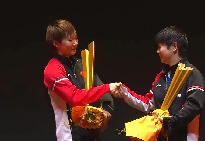 中国大满贯女单颁奖仪式,照片中的孙颖莎表情有点严肃,没有卫冕女单冠军,她心情会不