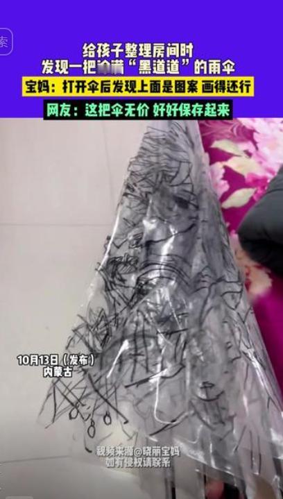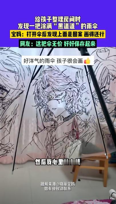 内蒙古,妈妈发现初中女儿,竟然在伞上“鬼画符”,刚准备呵斥,结果当她撑开伞后,瞬间被女儿的画惊艳到了,上面的是动漫人物,一个个都栩栩如生,非常的好看,网友:绝对的限量版。 近日,这把绘满精致图案的雨伞走红网络,不仅让网友惊叹于女孩的画技与巧思,更引发了关于创造力保护的深度思考。 伞面的弧形结构本是天然阻碍 —— 收拢时线条重叠成团,撑开后角度骤变,稍有偏差画面便会扭曲。女孩却精准把控每一笔的弧度与光影,笔下人物既有立体轮廓,发丝的走向、服饰的褶皱都清晰可辨。 她选用马克笔作画:既解决了雨伞的防水需求,又让色彩在撑开时鲜活饱满,仿佛动漫角色从伞面跃出,让普通雨伞有了 “活” 的灵气。 母亲最初看到收拢的雨伞时,黑色线条杂乱重叠,误以为孩子在 “不务正业” 地乱涂,难免心生焦虑。 可当雨伞缓缓撑开,完整的动漫图案展现在眼前时,她的态度瞬间转变,满是惊喜地称赞女儿的才华。 这短短几秒的转变,恰是许多家庭的缩影,我们总习惯用 “有用没用” 的标准评判孩子的兴趣,却忽略了 “杂乱线条” 背后藏着的奇思妙想。 网友的热议进一步放大了事件的意义,有人盛赞女孩是 “被耽误的天才”,称雨伞堪称 “博物馆级创意”;更有一条评论戳中痛点:“我家孩子也爱画画,上高中后怕耽误学习,就不让她画了。” 这句话道出了普遍困境 , 当学业压力遇上 “无用” 的兴趣,创造力往往最先被牺牲。 但女孩的故事恰恰证明,创造力从不需要宏大的舞台。它可能藏在一把雨伞的伞面里,藏在一张随手涂鸦的纸上,甚至藏在一个被拆开研究的玩具中。 对孩子而言,那些看似 “浪费时间” 的热爱,实则是他们探索世界、表达自我的方式。与其急着贴上 “没用” 的标签,不如先停下说教,看看他们在专注中创造了什么。理解孩子的独特表达,比简单的 “为你好” 更能守护他们的潜力。 对此,你还有什么看法呢?