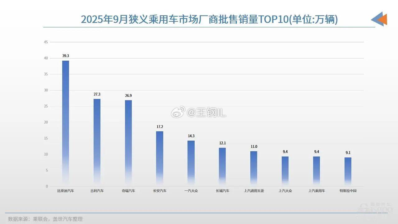 9月车企top10,从榜单数据来看,前十车企的总份额占市场较大比重,其中比亚迪汽