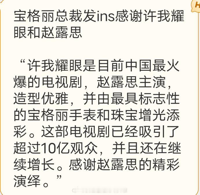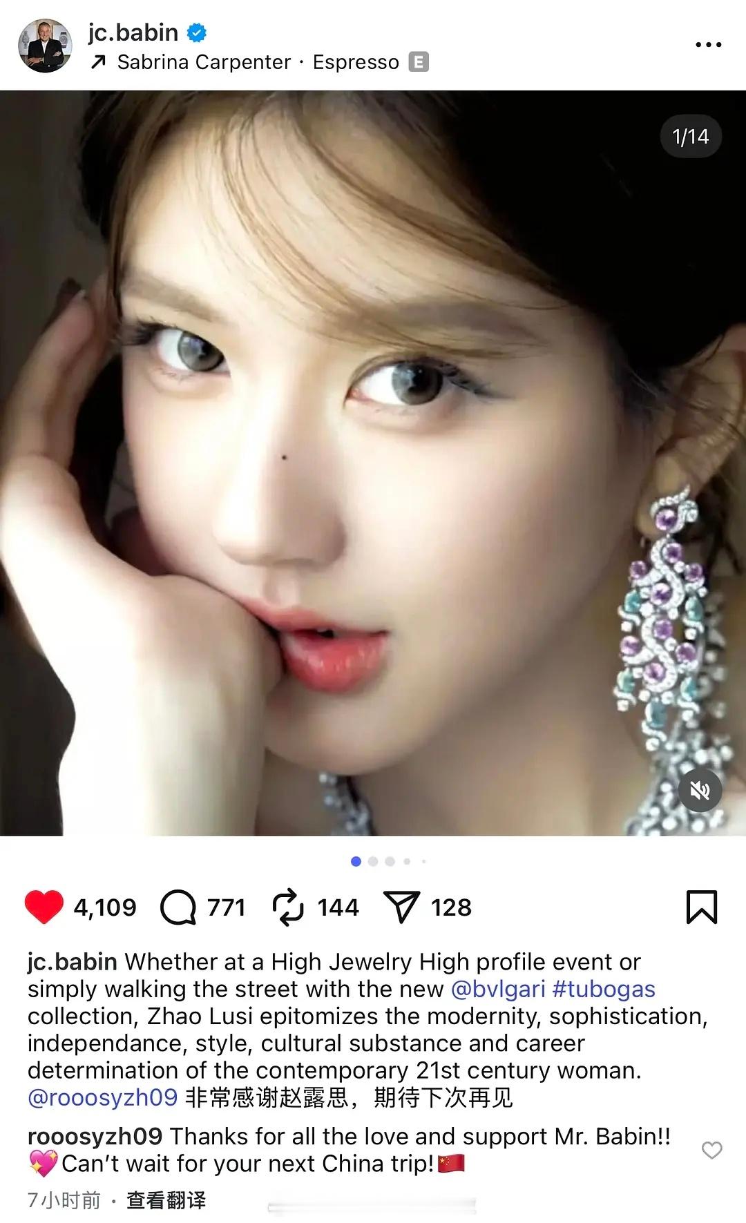 宝格丽全球总裁、副总裁、大中华区总裁都发了赵露思,就这么宠我们爆剧女神🤩🤩🤩