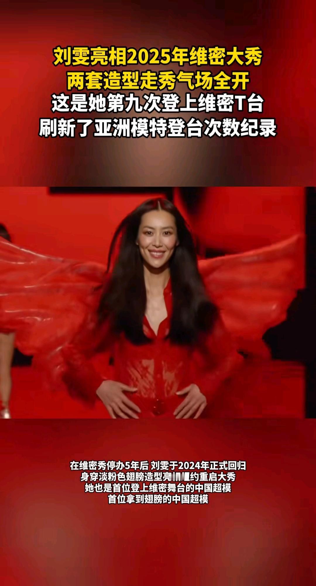 时尚圈更新换代比翻书还快 刘雯却在维密舞台站了十几年 2025年大秀一出场 直接把亚洲纪录刷到第九次 她是第一个踏上维密的中国模特 也是第一个拿到专属翅膀的中国人 维密停办五年再重启 她立马回归稳住场面 这次两套造型反差拉满 一套像裹着冰雪的女神 清冷又优雅 一套是全红裤装配翅膀 帅气得没边 没人知道那条红裤子有三十斤重 她走台步却稳得像踩在平地上 有人说造型保守不够亮眼 可真正的气场从不用暴露来撑 从旅游管理专业跨界模特 她靠的不是运气是硬实力 时尚舞台从不是昙花一现的地方 能一次次被记住的 永远是扎实的功底和独特的气质 这样的中国超模 谁能不爱看 你觉得她哪套造型更戳你