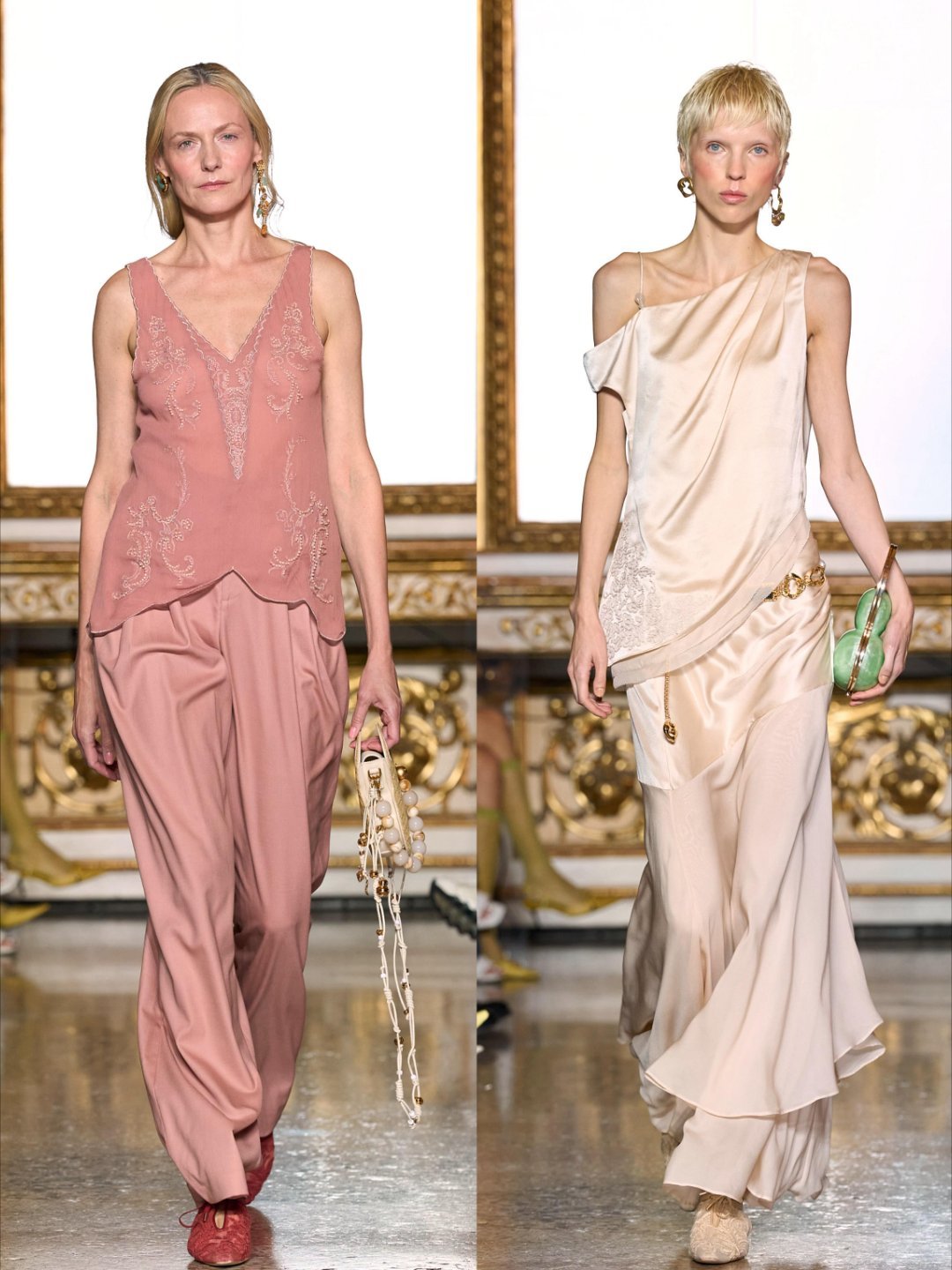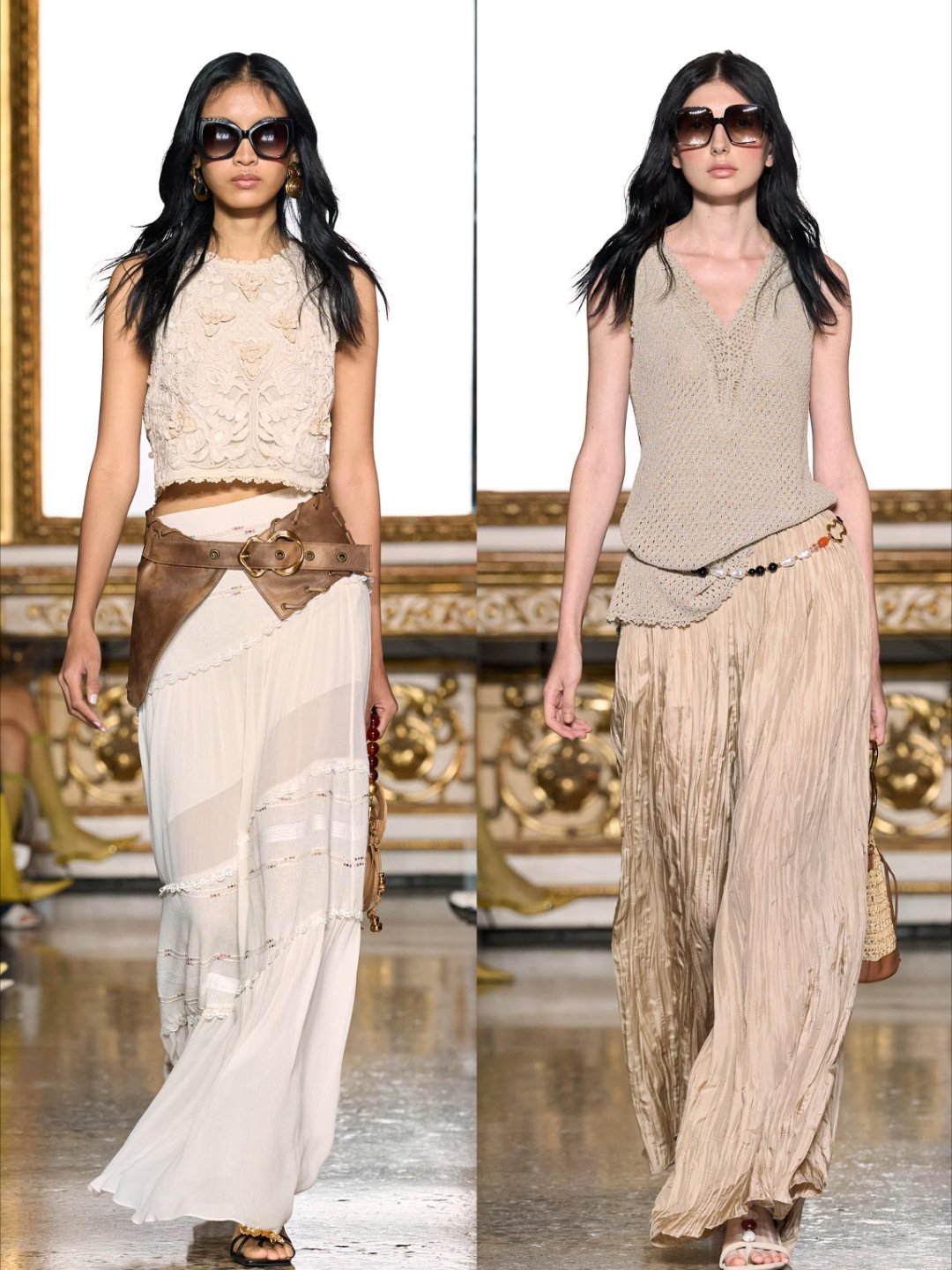 系列设计围绕“风中形态”展开,通过轻柔面料与精巧工艺精准捕捉风的多样姿态:微风拂过面料形成的自然褶皱,暖风掀起衣襟造就的柔软云浪,信风掠过服饰廓形的有序浮动,以及旋风般层叠交错的结构设计,让无形的风化为可触可感的浪漫痕迹,赋予服装灵动的动态之美。