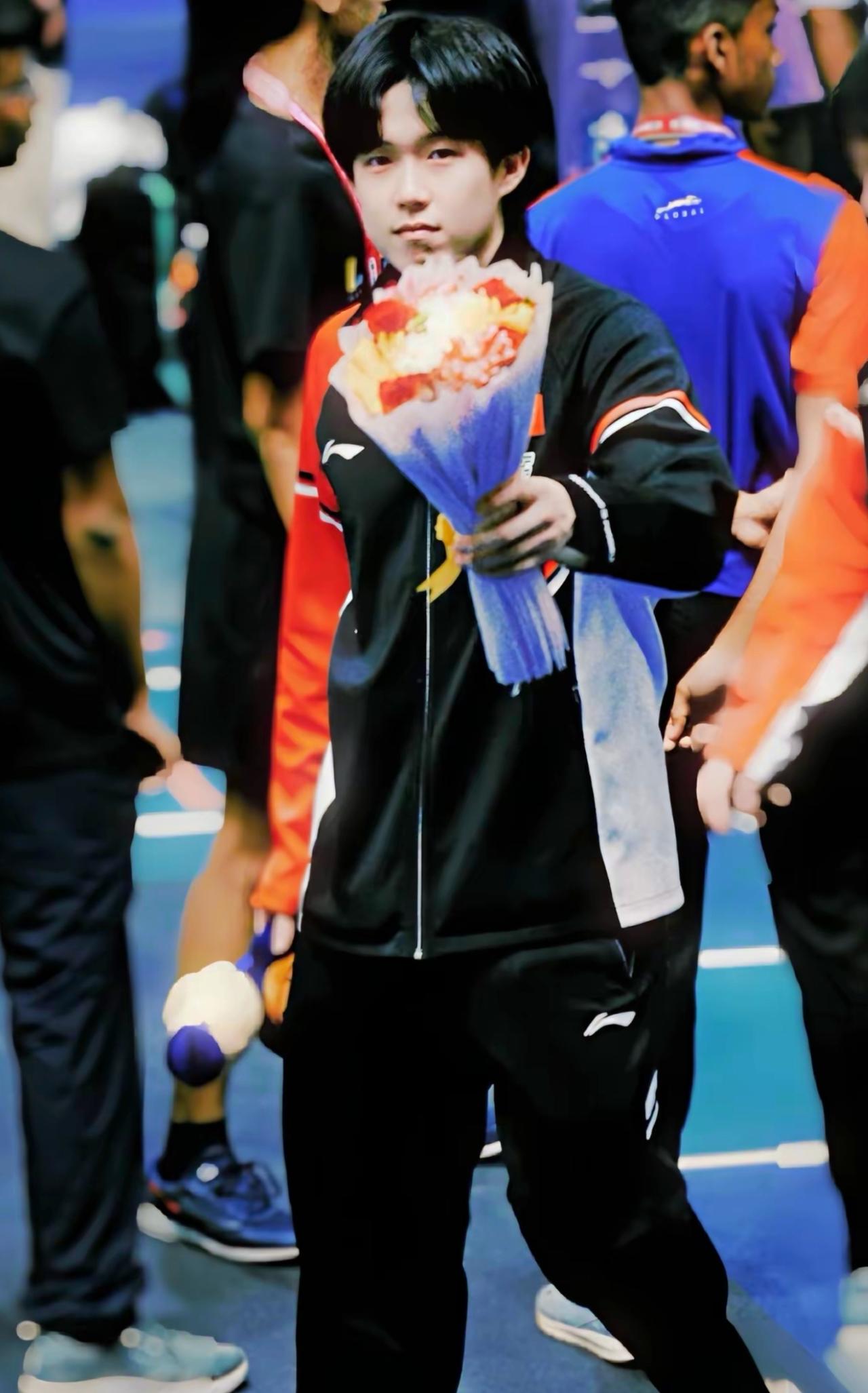 这张照片值得被珍藏, 这是亚锦赛拍得最好的一张照片, 大头看到了应该也会收藏吧, 现场中国球迷寥寥, 他偏在人群里精准找到举着相机的同胞, 脚步轻快地要送花。 镜头后的人忙着定格比赛, 竟没接住这份突如其来的温柔—— 可正是这“错过”, 才让少年眼底的光全落了空, 软乎乎的笑意里藏着对同胞的亲近, 还有刻在骨子里的尊重。 比起赛场上的凌厉, 这样带着点笨拙的温柔, 才是运动员最动人的模样。 不是刻意营业的体面, 是看到自己人时, 下意识流露出的真诚。 你见过运动员最戳人的瞬间是什么? 是赛后感慨, 还是这种猝不及防的温柔?