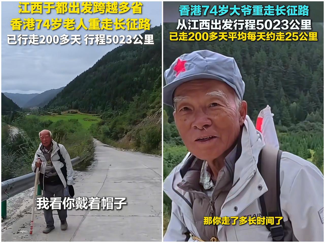 这下彻底火了, 不仅香港,连人民日报都点赞! 74岁香港爷,风餐露宿的长征路,每一步都是对毅力的死磕。他哪是“重走”?是把书本里的信仰,真真切切踩进了现实里,成了香港第一人,靠的从不是噱头,是骨子里的较真。 这哪是老人的个人旅程?明明是用行动告诉我们,信仰从不是挂在嘴边的空话,是哪怕老了,也愿意为它翻山越岭的勇气。 你身边有没有这样“轴”到可爱的老人?他们用自己的方式,把一件事做到极致。