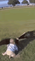 有点吓人!这老鹰🦅真的挺有劲儿啊!它竟然能把在草地玩耍的小孩子抓着飞起来!幸亏