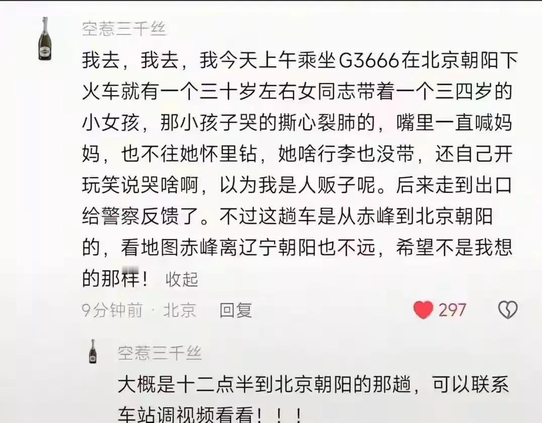 建平县黑水镇有小女孩失踪。有人称在火车上看到了这个小孩的身影。建平县警方动用侦测警犬追踪,警犬追踪到一处土路上时,气味消失了,警方推测小女孩可能被人用车接走。 有细心的村民发现,在女孩失踪那段时间,恰好有一列赤峰至北京北站的客车在建平站停靠了几分钟。 目前,建平县与朝阳市警方正一同赶往终点站。 小女孩失踪一事牵动了众多热心网友的心,大家都在焦急地等待小女孩平安归来。