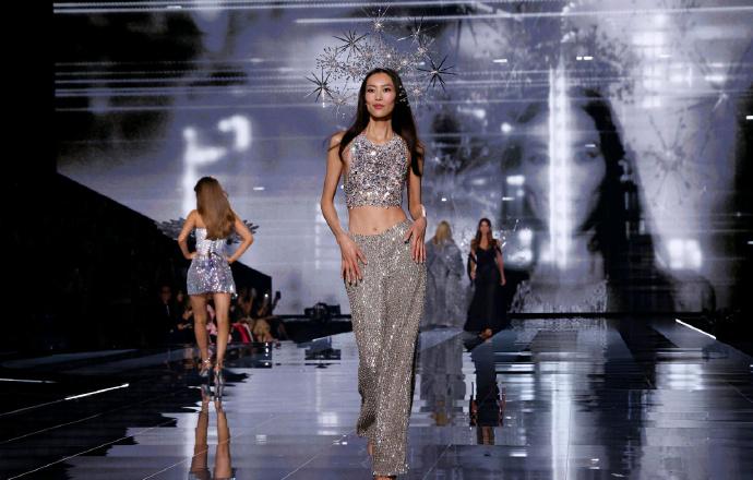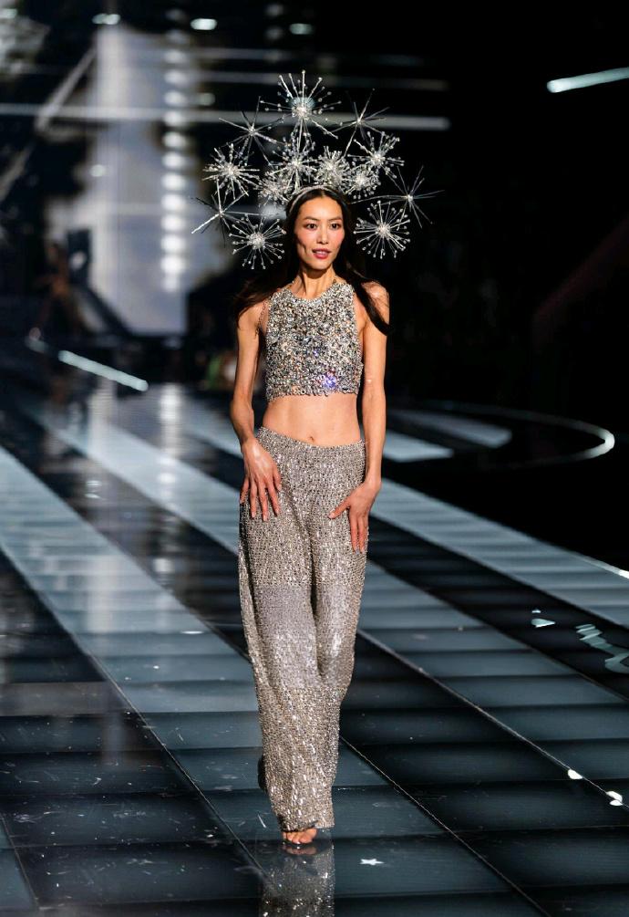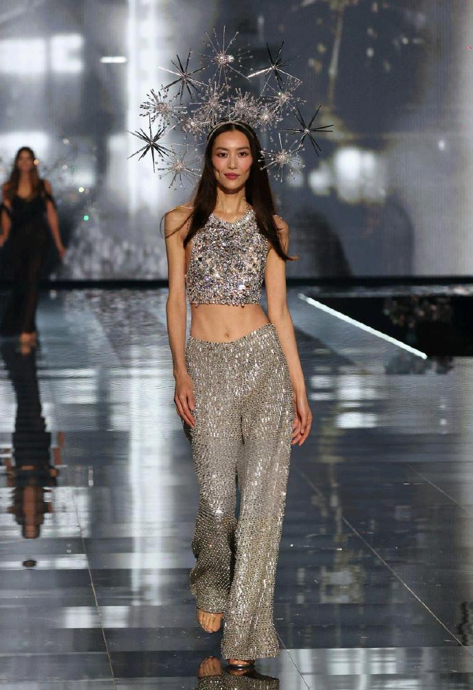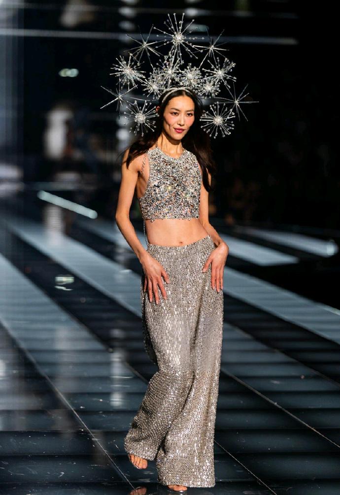 最近刘雯在走秀的时候搭配了一身银色的衣服,看上去很有艺术气息,真的是特别的漂亮。 刘雯上身穿银色短上衣,下身搭配银色阔腿裤,尽显潇洒时尚范儿。 她这次大秀细腰,还展现出了完美的身材比例,确实是太有魅力了。 刘雯脚踩透明风格的高跟亮相,个子显得非常的高挑,走路带风,显得很有型。 她还留着超美的披肩长发,画着精致的妆容,头戴夸张的头饰,尽显高贵之美,还很有女王气势。