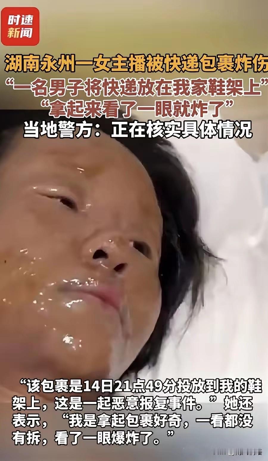 女主播把榜单前十的所有大哥钓成了翘嘴,帮买衣服,外卖,化妆品,结果因为失约太多次了被报复,不是自食恶果,还是什么。 湖南永州的一名女主播在出门的时候看到门口有个快递,想拆开快递看看,结果刚拿起来就爆炸了,果然是看一眼就爆炸啊。 现在所有人都在猜,这个女主播干了什么事情,被怎么搞,是被报复了还是什么? 而我在刷评论区,突然看到了这样一个评论,不知道是不是女主播榜单前十的其中一个大哥,这样说,女主播把前十的大哥都加了微信,一直在跟这前十的大哥在聊,而且聊的东西有点夸张,都把这前十的所有大哥钓成翘嘴了,不是帮他买衣服就是点外卖,还有一些化妆品。 而当他们提出想出来见一面的时候,女主播马上说可以同意了,可每一次,一到约定时间的前一天,或者约定时间的早上,不是说没时间,就是有事情,不是不想去,而是真的没办法。 那问题来了,一次可以这样说,那后面几次呢,而榜单前十的所有大哥也真相信了,一次两次的非要约出来不可。 现在真的怀疑是不是因为这些,而其中的一位大哥是不是不想当傻子了,而且又被骗了那么多,想报复回去。 现在快递能精准的放在主播家门口,是不是都知道主播他家在哪啊,家庭住址都知道,明眼人都看出来了这其中肯定有问题啊。 果然榜单中大哥,都不是一般人。 而到现在警方都还在调查,已经在调取打赏的记录和物流信息以及监控视频,应该离真相不远了。 出来混,迟早要还的。 现在的主播应该需要自律一点,粉丝也需理性一点,平台也需要负责任一点。