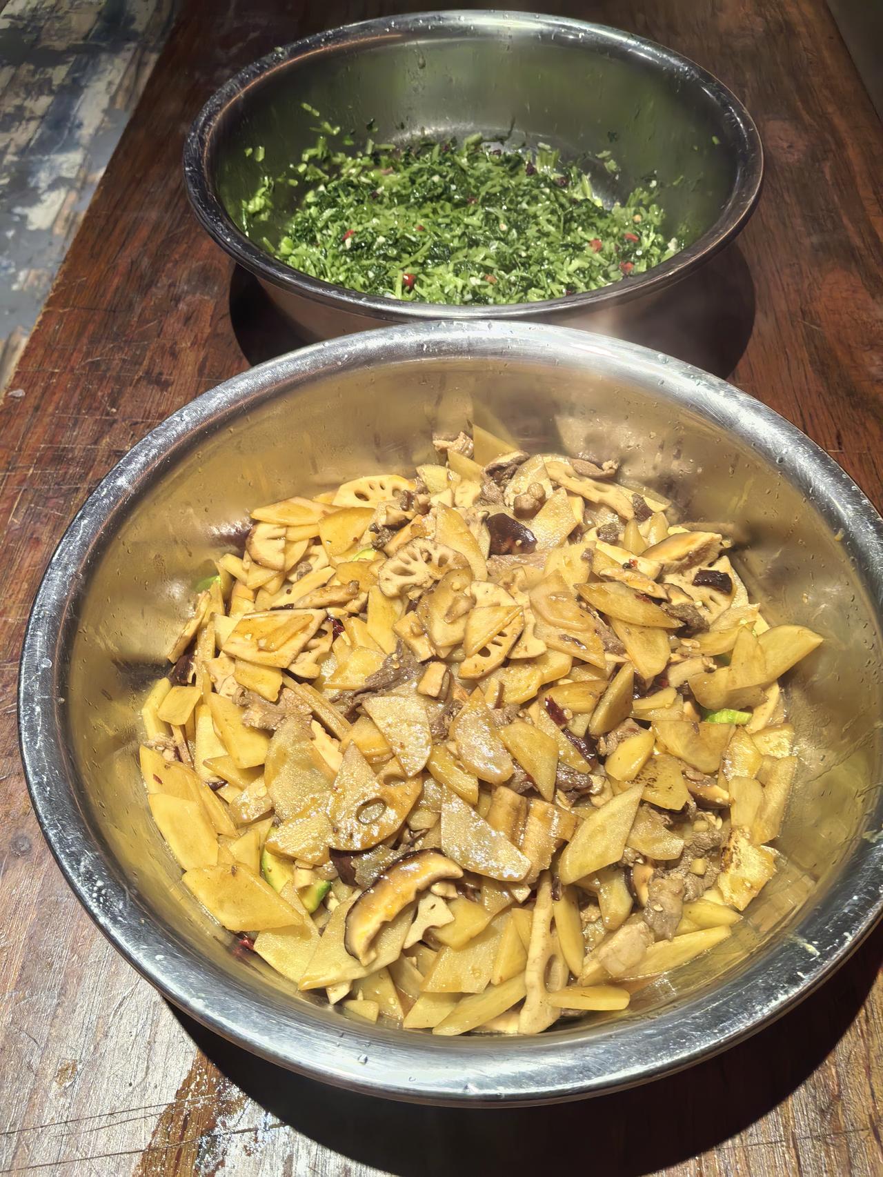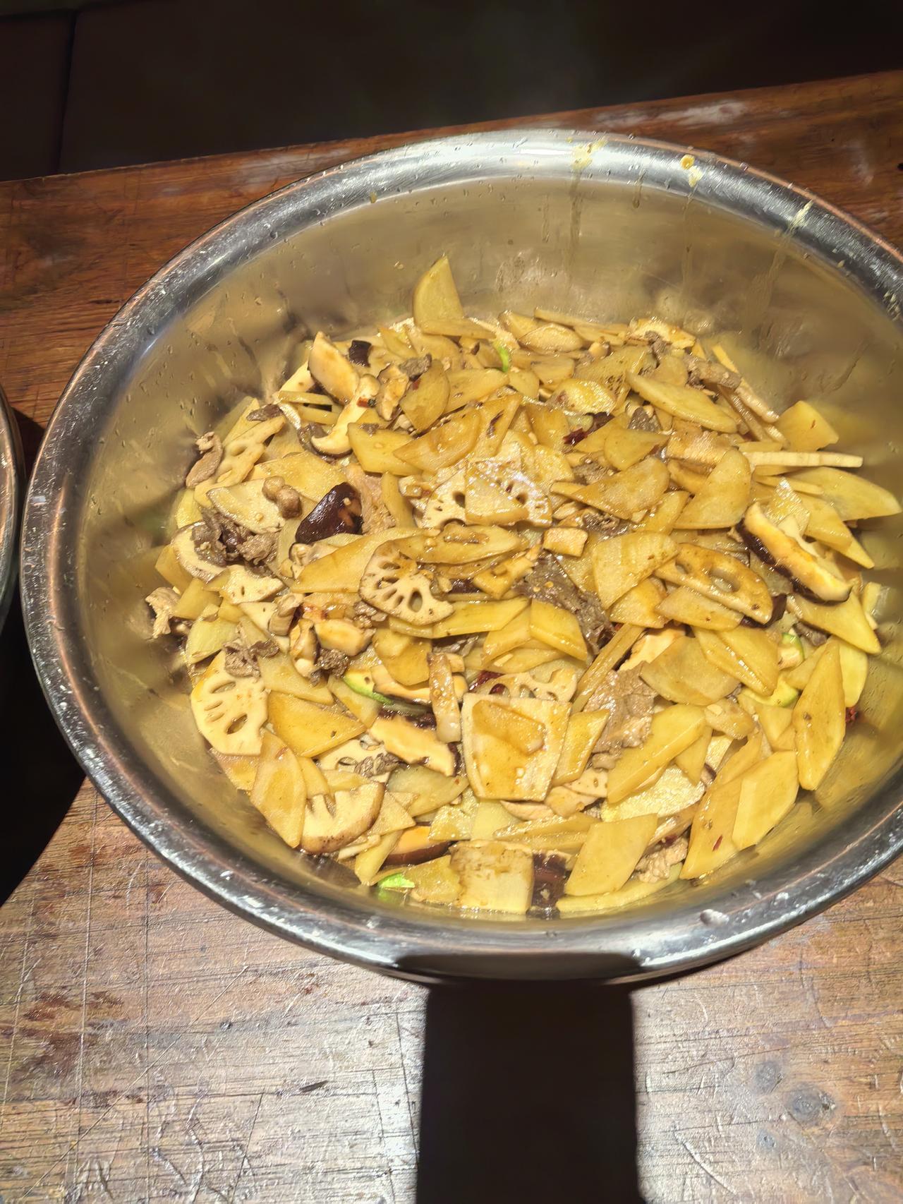 作为天天和山珍海味打交道的厨师,比起宴席上的精致大菜,我最惦记的,还是后厨灶台上那顿热气腾腾的家常工作餐——毕竟吃饱吃对味,下午颠勺才有劲儿! 今天的中餐桌一摆开,连隔壁凉菜间的师傅都探头问“能不能蹭两口”。主角必须是这盘回锅肉炒双片:五花肉煸得油亮焦香,肥肉不腻、瘦肉不柴,裹着豆瓣酱的咸香,和土豆片、藕片一起大火快炒。土豆吸足了肉香,软绵中带点焦边;藕片脆嫩爽口,每片都挂着酱汁,一口下去肉香、酱香、脆嫩感全齐了,配米饭能多扒两碗。 旁边的尖椒萝卜菜是解腻神器,青尖椒鲜辣够味,萝卜菜嫩得掐出水,简单热油快炒,保留了蔬菜的清爽,一口下去辣得开胃,刚好中和回锅肉的油气。最后再来碗紫菜蛋汤,蛋花打得匀匀的,紫菜鲜、蛋香浓,撒点葱花提味,温热一口下肚,胃里暖乎乎的,舒服又熨帖。 有人说厨师的工作餐肯定很“敷衍”,但对我们来说,工作餐是犒劳自己的小仪式——不用复杂技法,不用名贵食材,就用最家常的做法,把普通的菜炒出最对味的口感。这桌简单的中餐,是后厨里的烟火气,也是我们好好干活的底气~ 你们今天的工作餐吃啥啦?