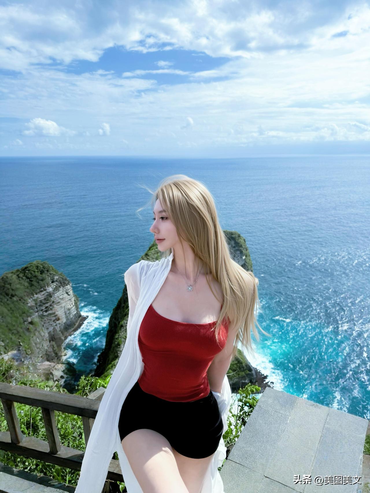 海边风景美如画,少女微笑挡阳光。美女沙滩风景美女沙滩度假图海边活力少女海边