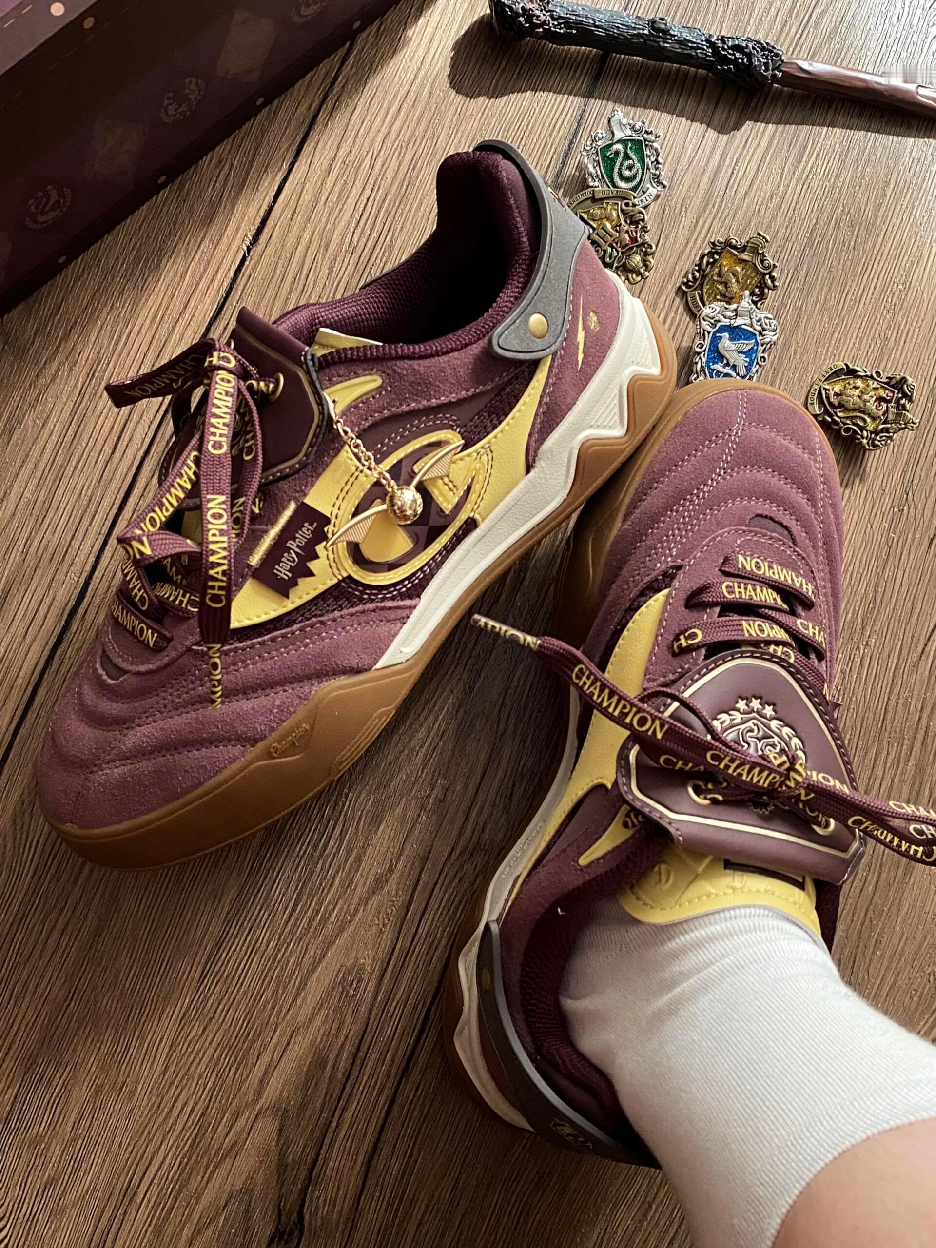 Champion×哈利波特联名足训鞋就是“魔法穿搭利器”吧?经典红金配色复刻格兰芬多元素,鞋舌可拆卸狮院徽章、挂饰还原灵动金色飞贼,细节拉满霍格沃茨仪式感,鞋后跟护具设计更暗合魁地奇赛场记忆。