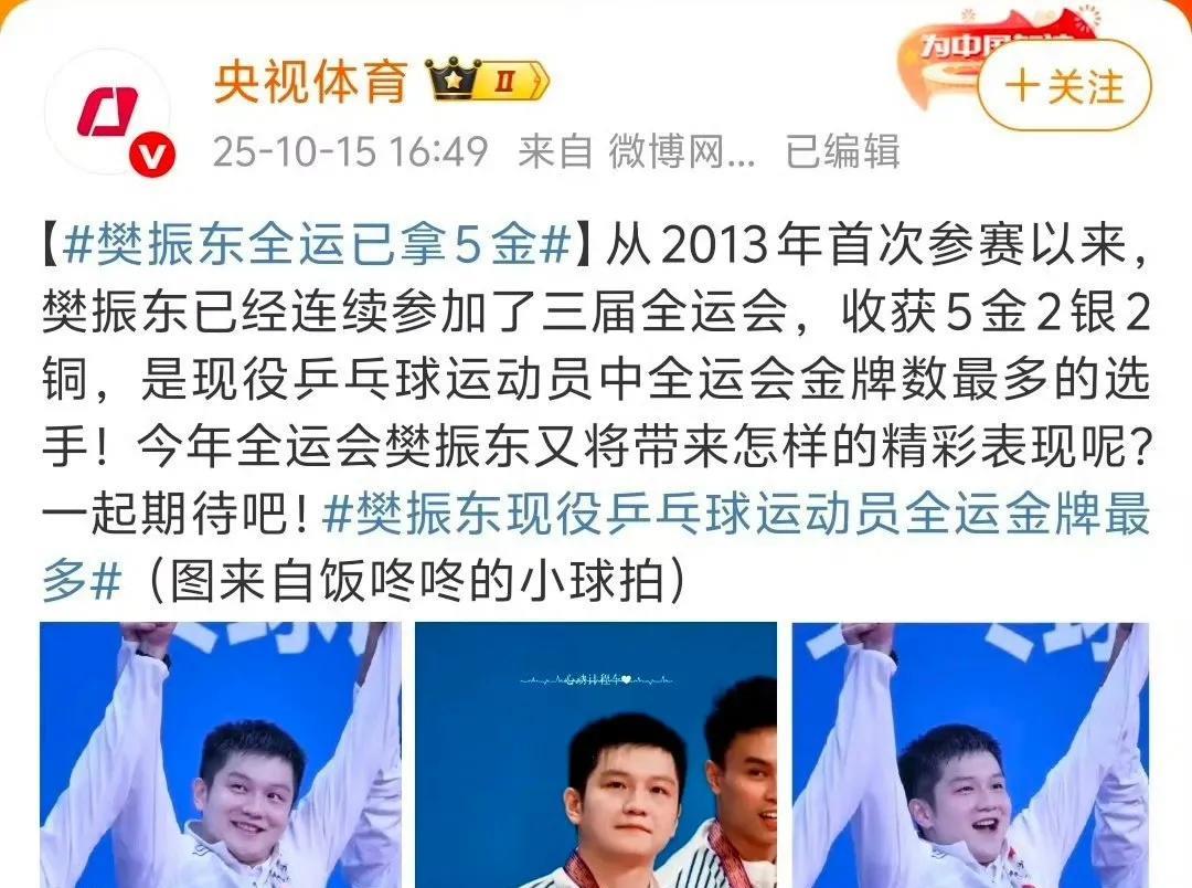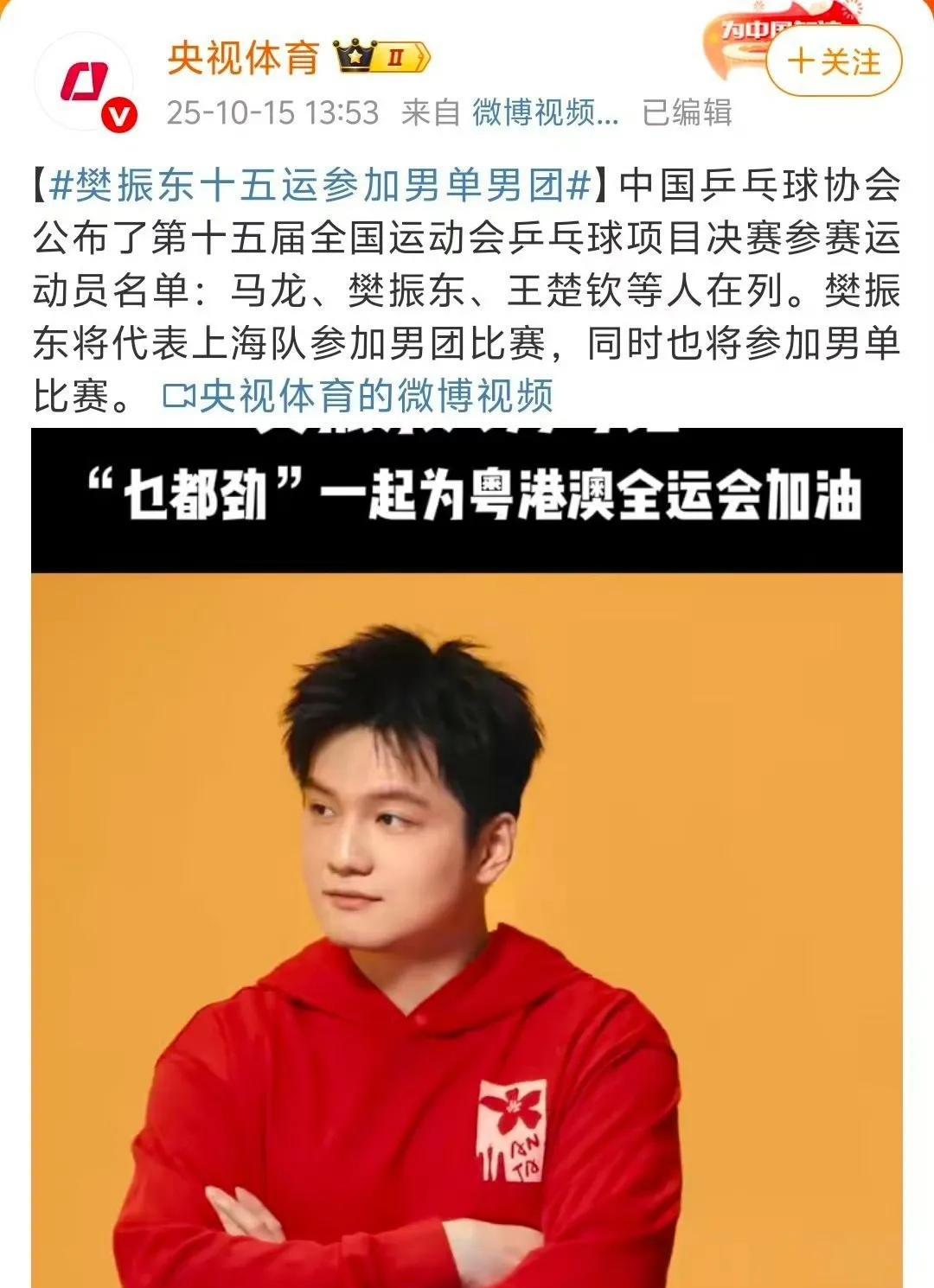 金秋十月,全运会还没开幕,央妈已经开始想东东了! 10月7日开始,官网几乎每天都在宣传樊振东。 从小在央视镜头下长大的孩子,怎能不爱呢? 勇敢、坚毅、刻苦、真诚,责任感、天赋异禀……樊振东配得上所有的赞誉! 全运会马上要开幕了, 央妈正能量的宣传是最好的精神能量。 央妈,继续多多宣传东哥和十五届全运会,不要停哈。 #新锐创作者成长计划#