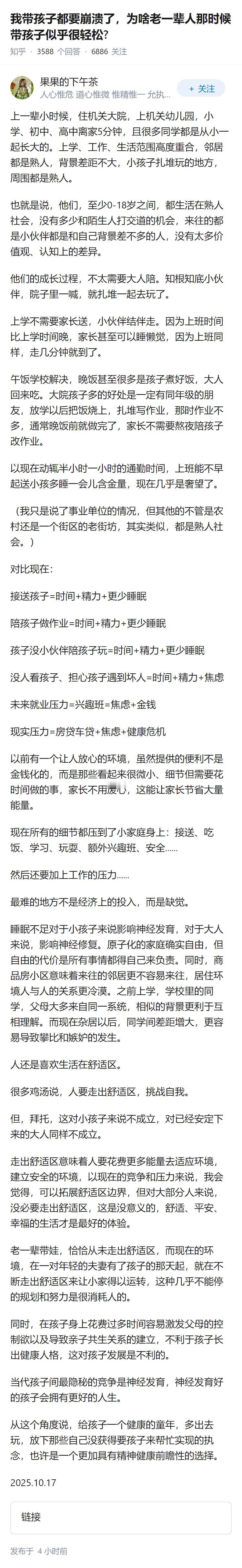 我带孩子都要崩溃了,为啥老一辈人那时候带孩子似乎很轻松?