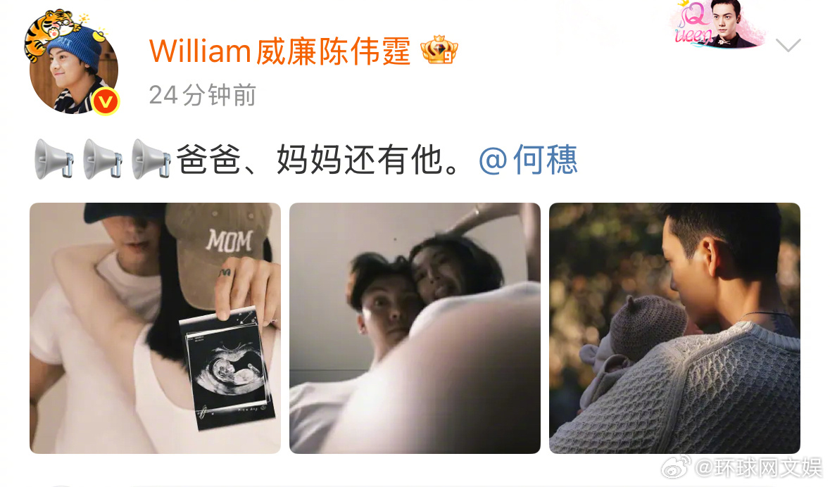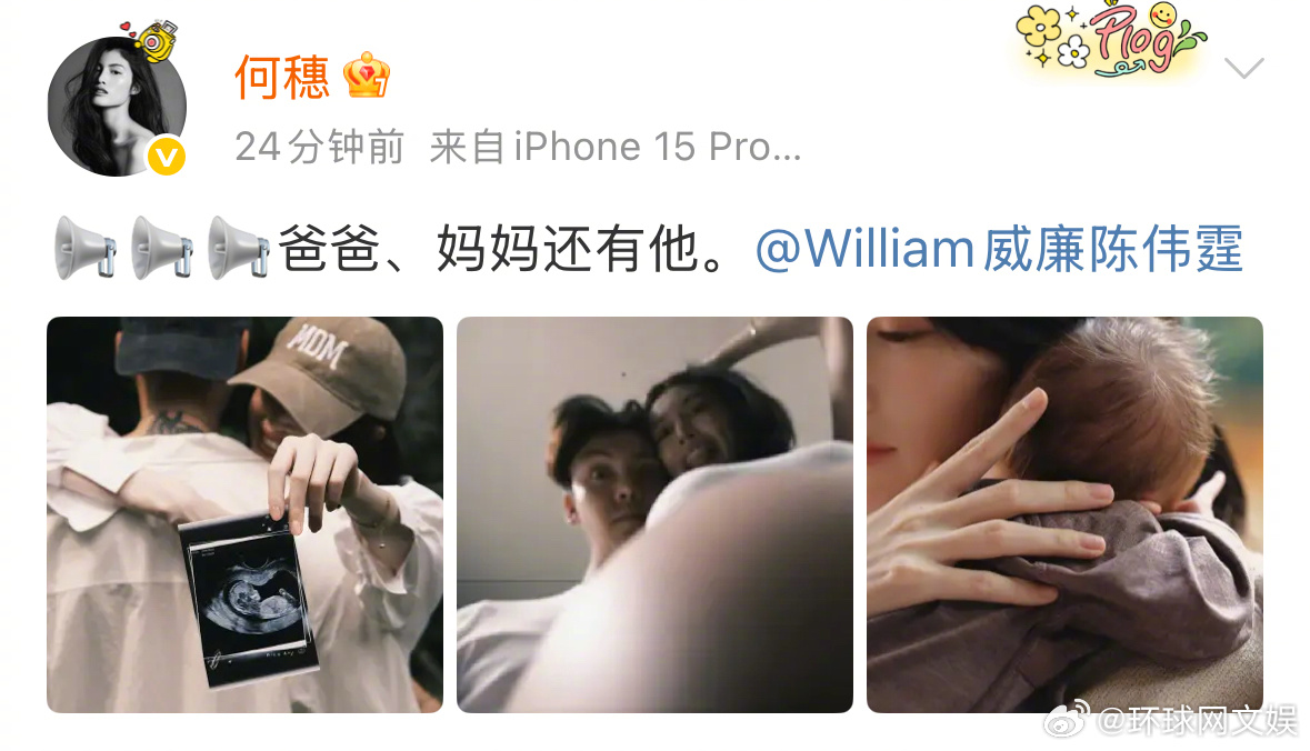 #陈伟霆何穗官宣生子# 18日,和晒出B超照、孕期照、和孩子的合影,官宣生子:“爸爸、妈妈还有他。”
