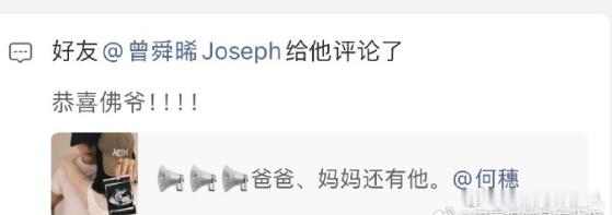 曾舜晞评论陈伟霆陈伟霆升级奶爸,曾舜晞用 “老佛爷” 昵称道贺,这波互动太懂粉丝心。