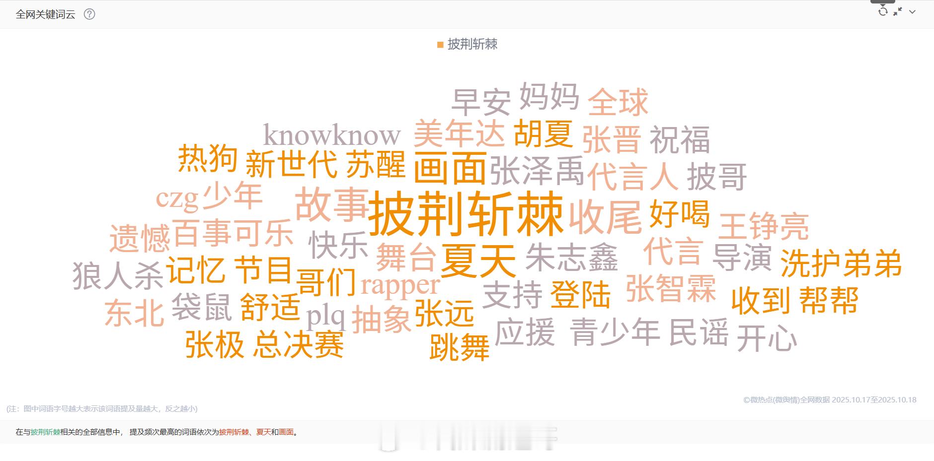 芒果TV《披荆斩棘》关键词云(2025.10.17.12-10.18.12)