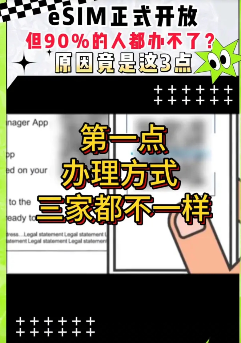 eSIM正式开放,但90%的人都办不了?原因竟是这3点。 手机卡的无卡时代来了,移动、联通、电信的eSIM服务已经启动,但规矩大不同,想办理这三点必须搞清楚。 ·第一点,办理方式三家都不一样。中国移动全国都能办,但必须本人带身份证跑一趟营业厅。中国联通覆盖25个省市,支持线上预约,现在已经有超过19万人排队了。中国电信需要先用APP预约,然后再去营业厅办理。 ·第二点,办理有硬性门槛,不管选哪家都得同时满足。首先年满18周岁,其次名下的手机卡总数不能超过5张,最后不能有欠费记录。 ·第三点,不是所有手机都能用。苹果手机国行版只有iphone17air支持,美版等水货iPhone14系列已经完全取消卡槽,但是国内运营商eSIM用不了,千万别买错。安卓旗舰比如三星S20系列、小米17系列支持。 记住这三点办eSIM不迷糊,你的手机支持eSIM卡吗?