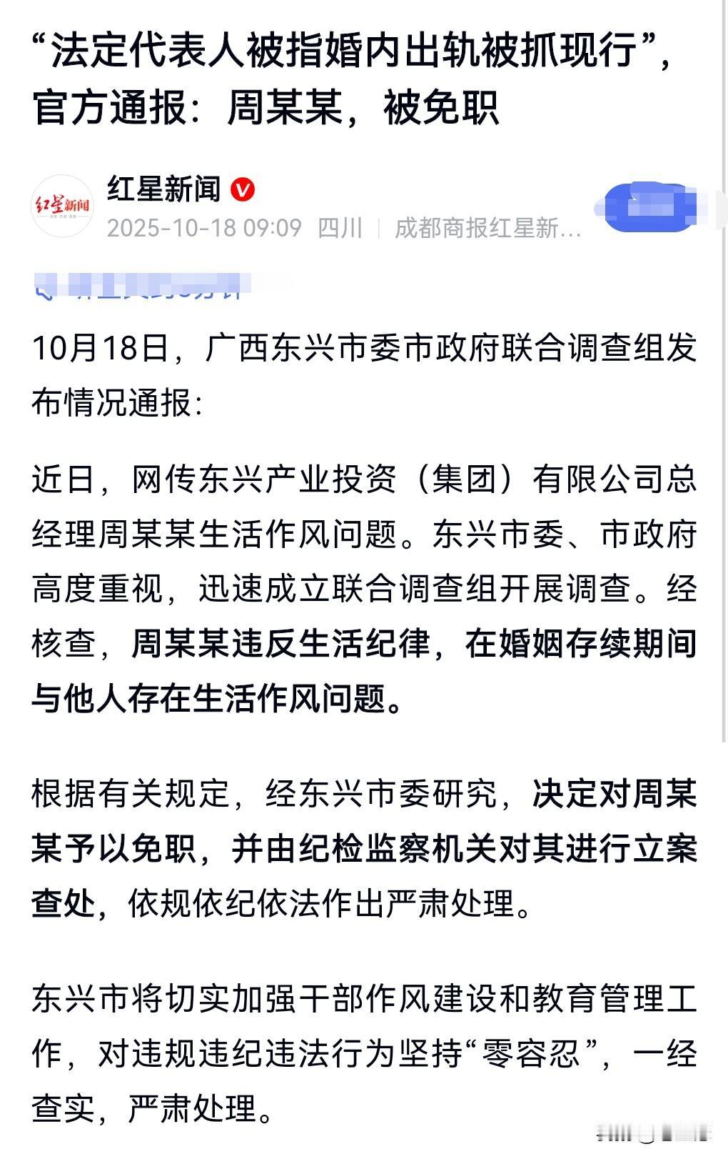 做人一定要学会知足,特别是有家庭的人,一定要学会珍惜自己的婚姻以及名声。 这对当官的来说尤其重要。 近日,一干部被指婚内出轨被抓现行,官方通报称确有此事,干部已被免职。 如果干部容容易出轨的话,那很可能就涉及到一些违法犯罪问题,比如没法搞钱啊。 要好好的从这方面查查。