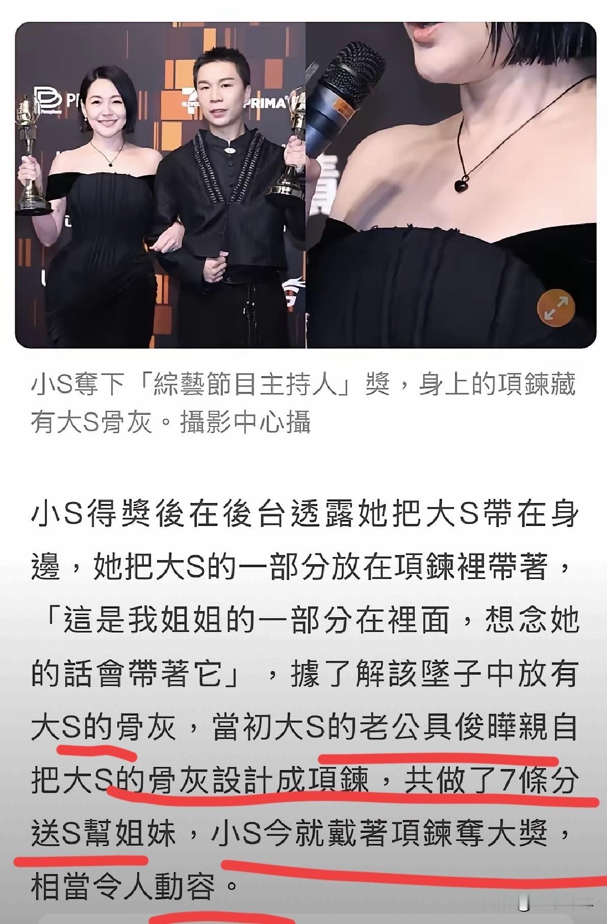 把大S骨灰戴在脖子上?!小S参加活动,戴着大S骨灰做的项链,发言的时候痛哭流涕