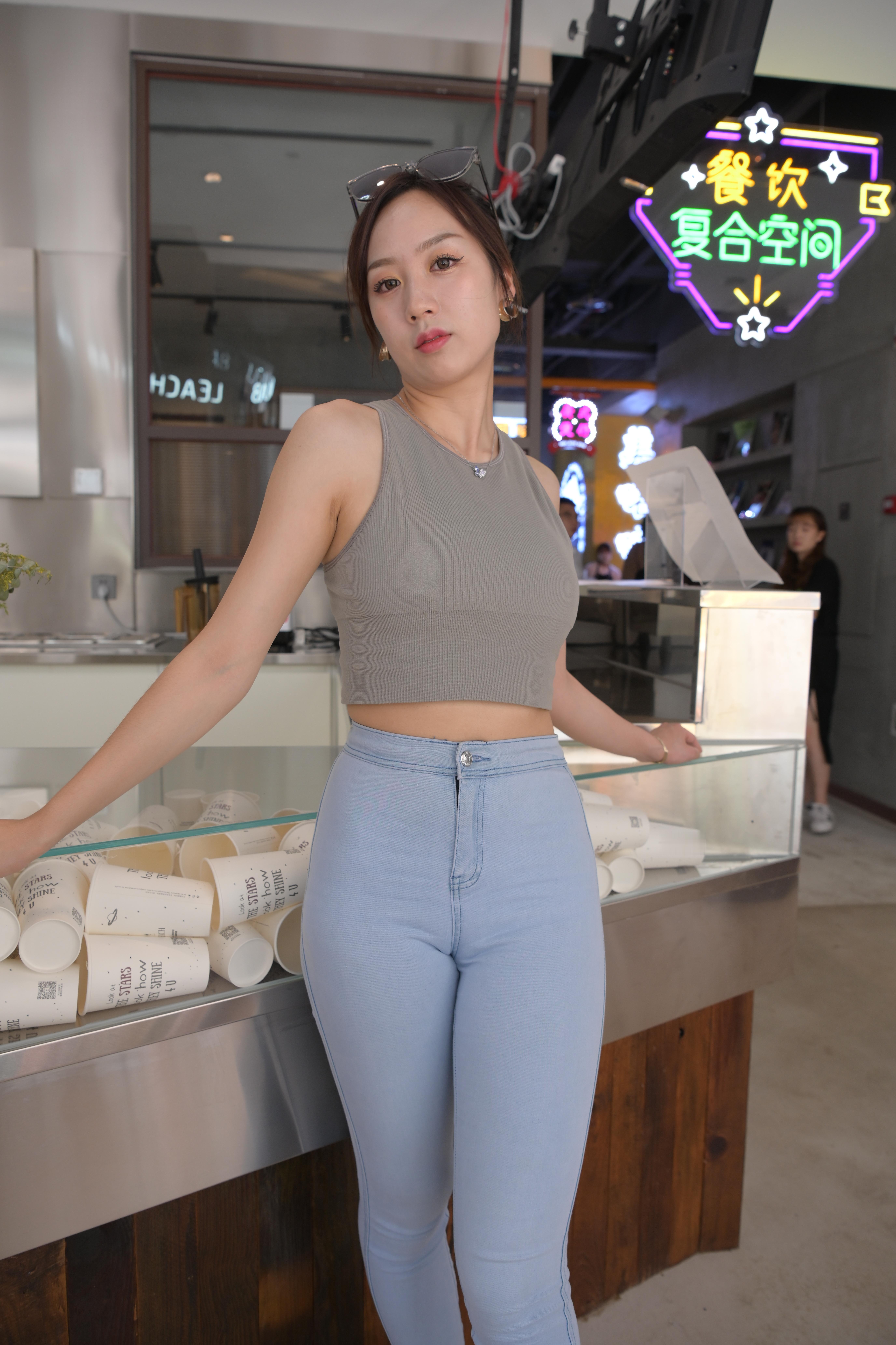 进店搜:瑜伽裤-154 蓝色瑜伽裤运动系高挑美女美女帅哥