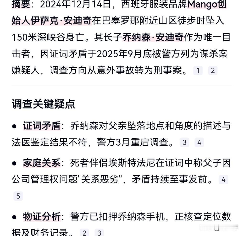 如果真是儿子杀害了父亲,那绝对是个炸裂的消息。 近日媒体报道,西班牙身价45亿美元富豪坠崖身亡,是在2024年坠亡的。 由于当时长子是唯一的目击证人。 他的供词出现矛盾。 如今已经被怀疑成是嫌疑人。 是得好好查查,如果真是这儿子杀的,那真的是太丧心病狂了,必须严惩。 而且值得一提的是这对父子的关系不是太好,经常发生矛盾冲突。