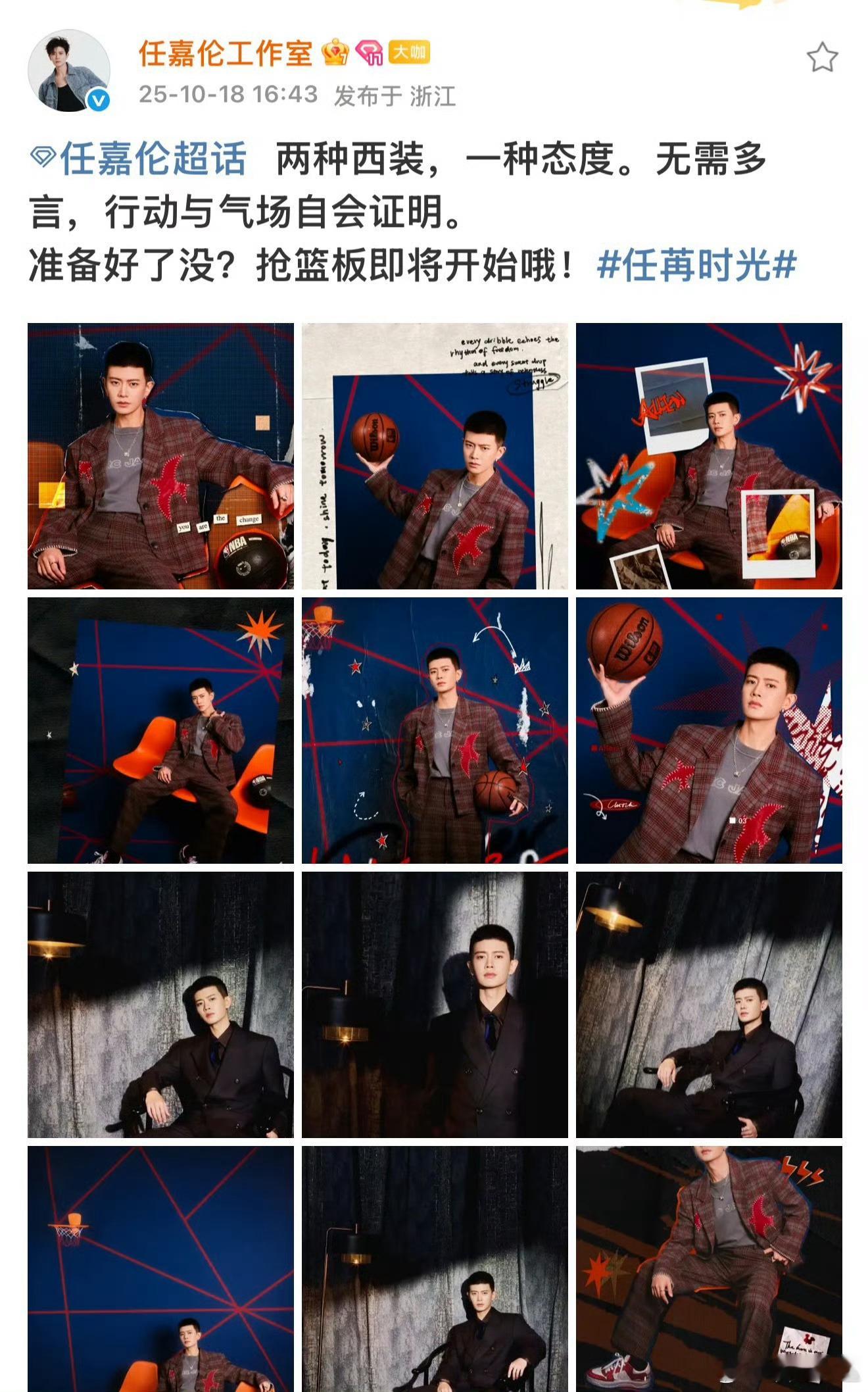 任嘉伦工作室发布NBA聚星名人赛活动出图,好霸气的发言:“无需多言,行动与气场自会证明。”