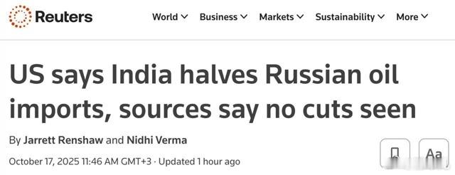 路透社否认印度减少购买俄罗斯石油的报道