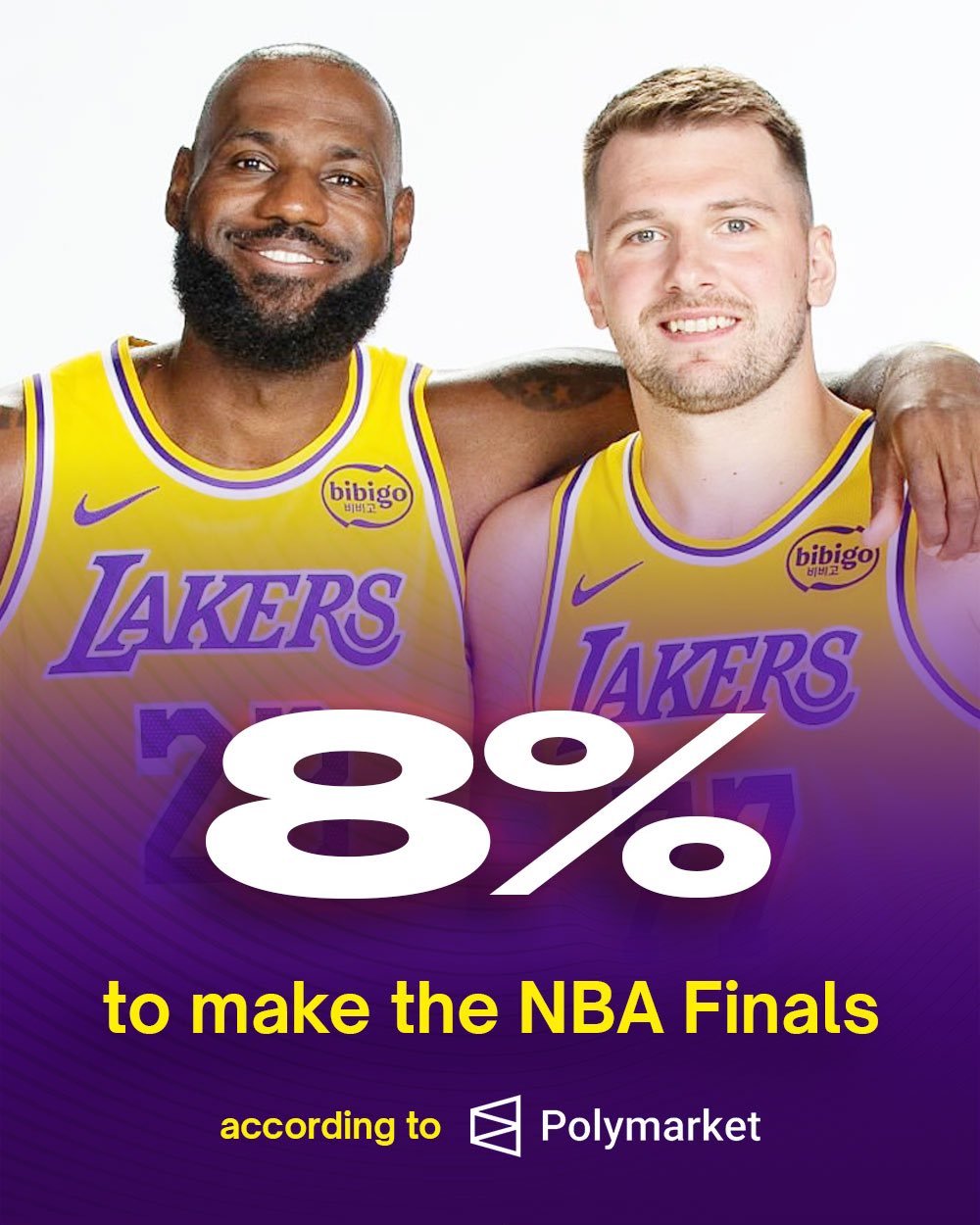 据Polymarket估算,湖人打进下赛季总决赛的概率达到8%。[doge]