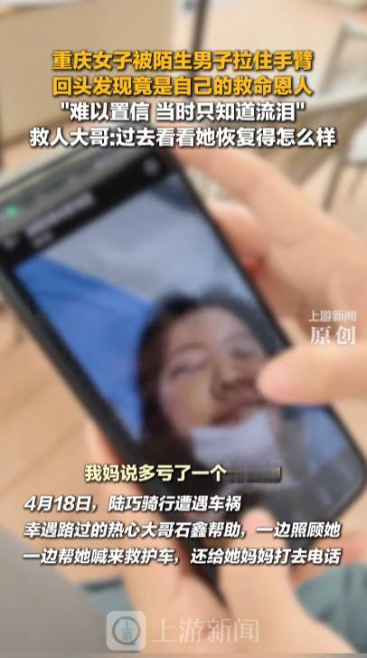 这男子绝对是个好人!10月15日报道,重庆,一女子正在炒鸡店里忙活时,突然被一位陌生男子拉住了她的手,女子本能的想要挣脱,谁知男子这时候却说了一句话,让女店主当场泪流满面。 10月15日上游新闻报道,那天炒鸡店老板娘陆女士正忙着收拾餐具,店里客人不多,她刚从后厨端着盘子出来,突然感觉有人拉住了自己的胳膊。 陆女士本能地想要挣脱,抬头一看是个陌生男子,正想开口询问,对方却轻声问道:头上的伤好了没。 就这么一句话让陆女士愣在原地,眼前这个男人她完全没见过,可这句话却让她瞬间想起了几个月前那场差点要了她命的车祸。 那是4月18日的时候,陆女士像往常一样骑着电动车去进货,行驶在渝中区的一条主干道上,那天天气不错,路况也很好,她戴着头盔正常行驶在非机动车道上。 意外来得毫无征兆,后方一辆汽车突然失控,直接撞上了陆女士的电动车,巨大的冲击力让她整个人飞了出去,头盔在撞击中碎裂,她的头部重重磕在地上,鲜血瞬间染红了路面。 就在陆女士失去意识的时候,一个骑摩托车路过的男子看到了这一幕,他叫石鑫当时正好下班回家,看到有人倒在血泊中,石鑫二话不说停下车就冲了过去。 石鑫蹲下身子,先是摸了摸陆女士的颈动脉,确认还有脉搏后松了口气,他曾经学过基础急救知识,知道头部出血必须尽快止血,石鑫脱下自己的外套,小心地按压在陆女士头部的伤口上。 现场很快围了不少人,大家七嘴八舌地议论着,石鑫一边维持着按压动作,一边大声喊:谁帮忙打个120,说清楚地址和伤情。 在等待救护车的过程中,石鑫注意到陆女士的手机掉在不远处,他让旁边的人帮忙捡过来,翻开通讯录找到标注妈妈的号码。 电话接通后石鑫尽量用平静的语气说:阿姨您好,您女儿出了点车祸,现在在渝中区XX路,已经叫了救护车,您赶紧过来一下。 陆女士的母亲在电话那头急得直哭,石鑫一边安慰她,一边详细说明了位置和伤情,救护车到达后石鑫帮着医护人员把陆女士抬上担架,简单交代了情况。 看着救护车远去,石鑫这才发现自己的外套已经被血染红了,周围有人问他是不是认识伤者,要不要一起去医院,石鑫摇摇头骑上摩托车离开了现场。 陆女士在医院昏迷了两天才醒过来,母亲告诉她是一个好心人救了她,还帮忙联系了家人,母亲说那人说话带着新疆口音,救护车来了就走了连名字都没留,出院后陆女士一直想找到这个救命恩人,但始终没有音信。 其实石鑫根本不是新疆人,他土生土长在重庆,之所以故意装外地口音,是不想给陆女士一家造成心理负担,他觉得如果对方以为恩人远在外地,可能就不会一直惦记着找人答谢了。 但石鑫自己却一直放不下这件事,过了一段时间后他整理手机相册时发现当时拍的现场视频里,陆女士工作服上印着店名,他在地图上搜索,发现这家炒鸡店离自己住的地方并不远。 石鑫犹豫了很久最终还是决定去看看,他想知道那个女孩恢复得怎么样了,有没有留下什么后遗症。 那天下午石鑫推开炒鸡店的门,看到陆女士正在厨房里忙活,动作麻利,看起来恢复得不错,他点了份招牌炒鸡,坐在角落里慢慢吃,时不时观察着陆女士的状态。 当陆女士端着水壶过来添水时,石鑫注意到她手腕上有道疤痕,他终于忍不住问出了那句话:头上的伤好了没。 看着陆女士疑惑的表情,石鑫掏出手机,点开了那段保存的视频。画面里,他单膝跪地按压着陆女士的伤口,另一只手拿着电话在联系家属。 陆女士看完视频眼泪瞬间夺眶而出,几个月来的寻找原来恩人就在同一座城市,还专门来看望自己。 等陆女士平复情绪出来坚持要免单,石鑫却执意付钱,两人坐下来聊天,石鑫说起自己也曾在车祸中被陌生人救助的经历,那是多年前他骑摩托车摔伤,一个出租车司机把他送到医院还垫付了医药费,那份恩情他一直记在心里,所以看到需要帮助的人,总会毫不犹豫地伸出援手。 陆女士把那段视频保存在手机里,她说要让自己的孩子知道,这个世界上真的有不求回报的善良,她也决定把这份温暖传递下去,遇到需要帮助的人,一定会像石鑫一样毫不犹豫。 在这个快节奏的时代,石鑫的故事让人看到了人性中最美好的一面,善良就像一个圆环,一个人的善举会激发另一个人的善意,最终形成一个温暖的循环,石鑫他曾经被帮助过,所以想把这份爱心传递下去,而陆女士也会成为这个善意链条上的一环,继续传递这份温暖。 麻烦看官老爷们右上角点击一下“关注”,既方便您进行讨论和分享,又能给您带来不一样的参与感,感谢您的支持!