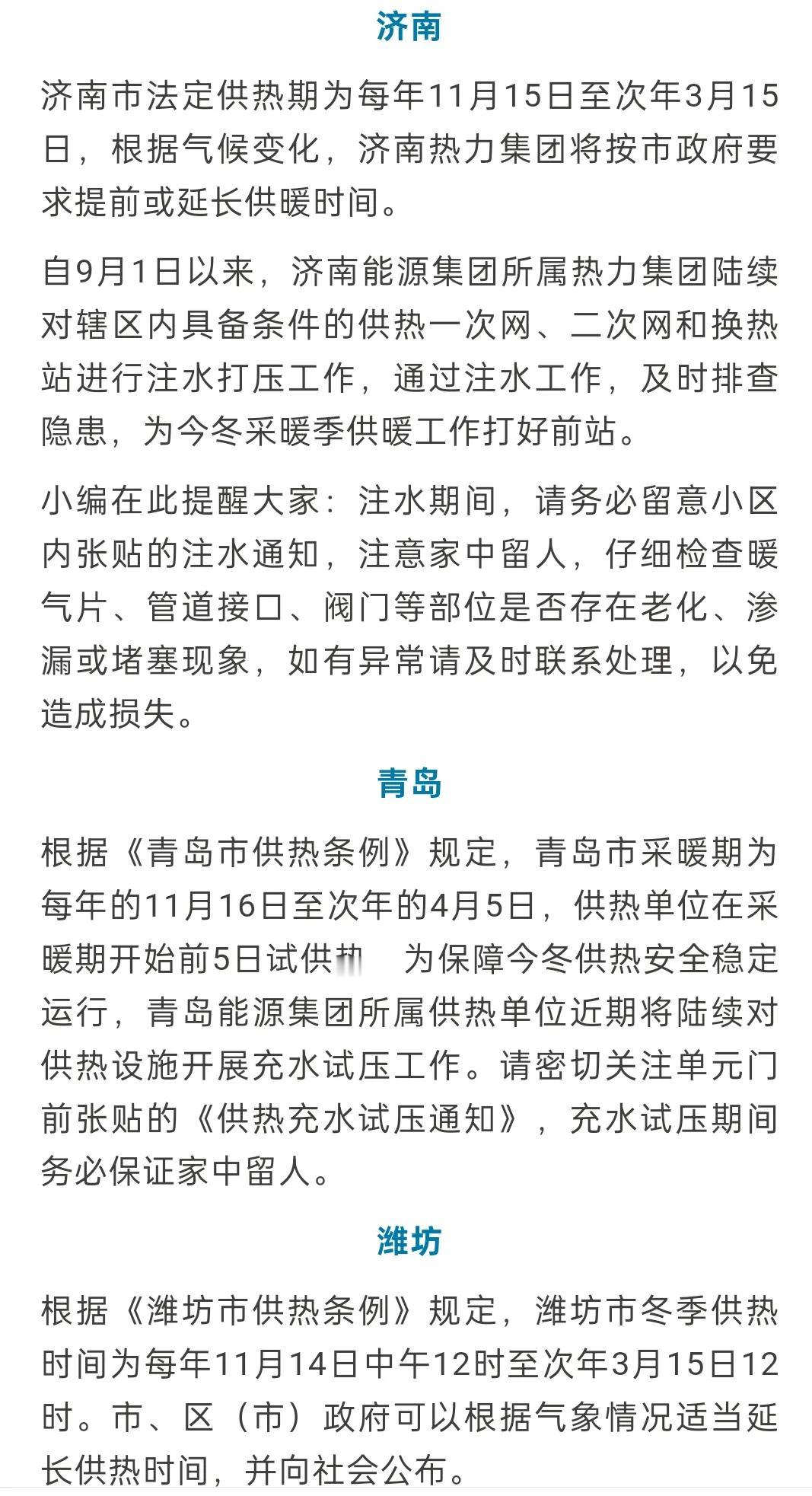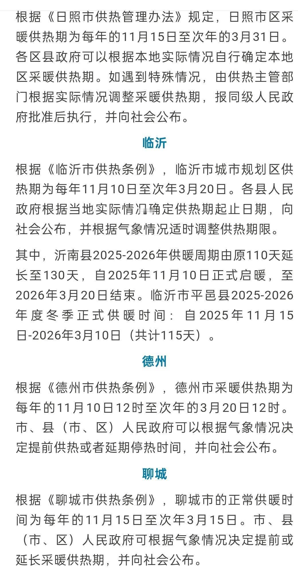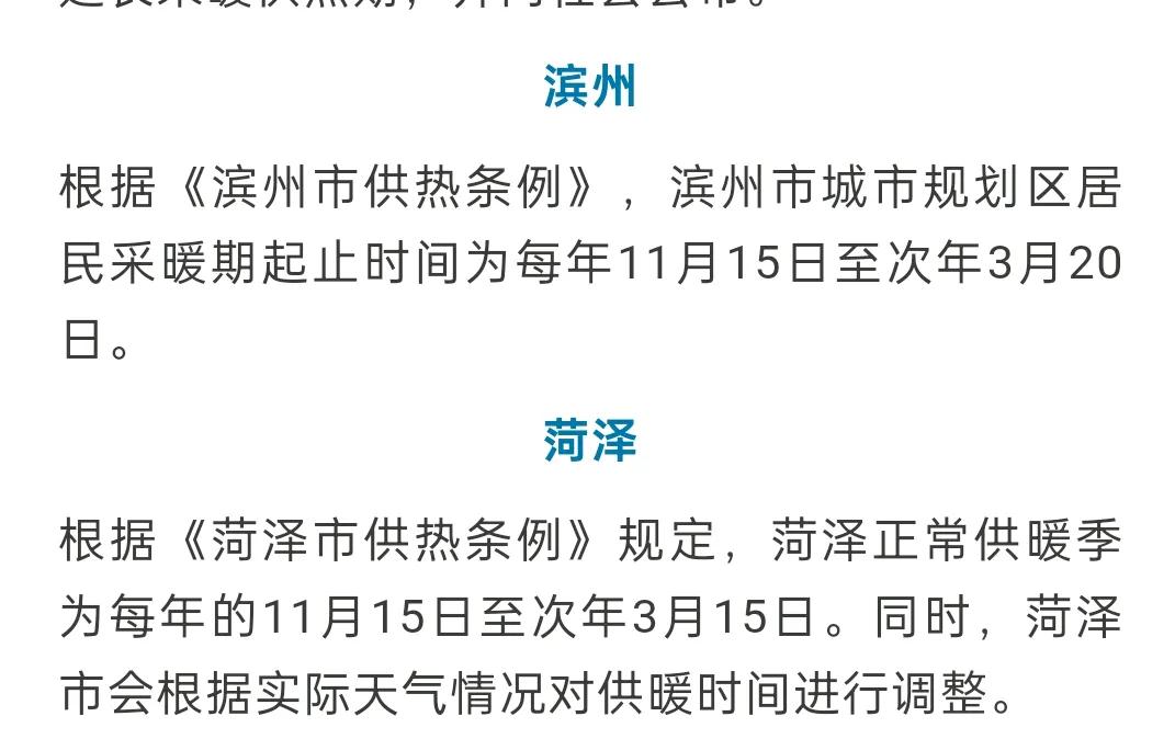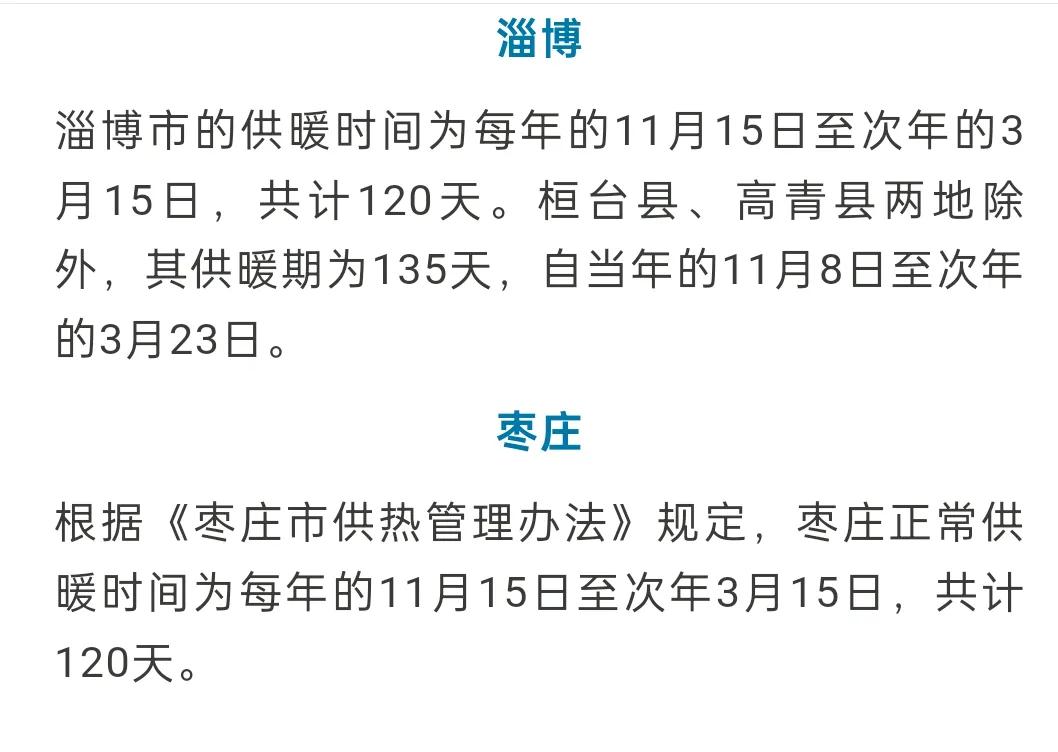 山东省16市2025~2026年度供暖时间