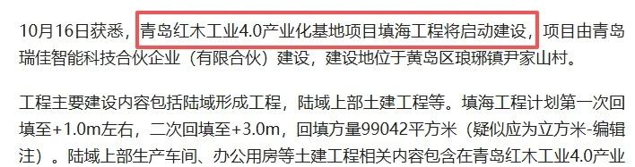 据悉,与日照毗邻的青岛西海岸又填海了。青岛红木工业4.0产业化基地项目填海工程将