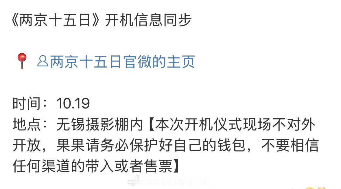 成毅两京十五日,开机大吉🎉祝拍摄顺利