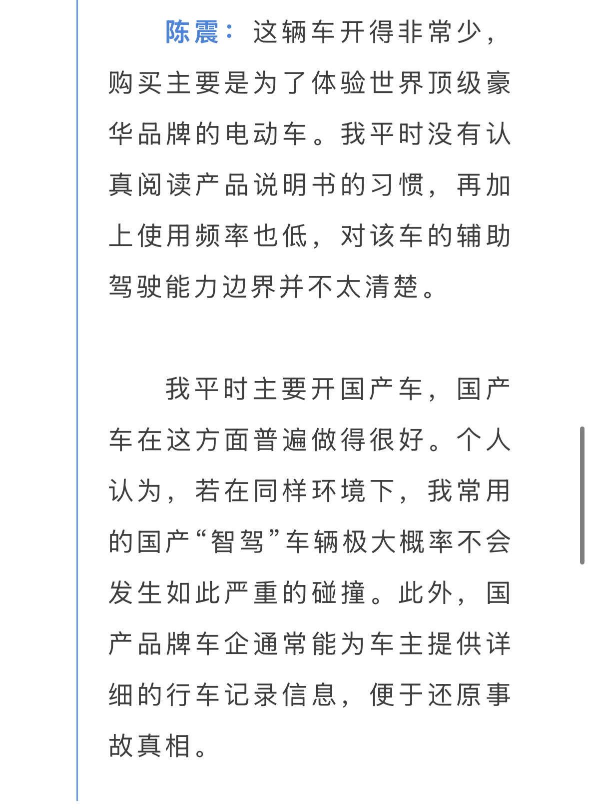 震哥接受法制日报采访,谈了前些天事故的经过。当时,劳斯莱斯闪灵处于L2级辅助驾驶状态,驶至事发路口前,低头捡东西,随后发生碰撞。他认为,在同样的环境下,自己常用的国产“智驾”极大概率不会发生如此严重的碰撞。讲道理,现在虽说都叫L2级辅助驾驶,但真实表现真心天壤地别,有的车做的很烂,根本不好用,用起来会让人更小心翼翼更累。