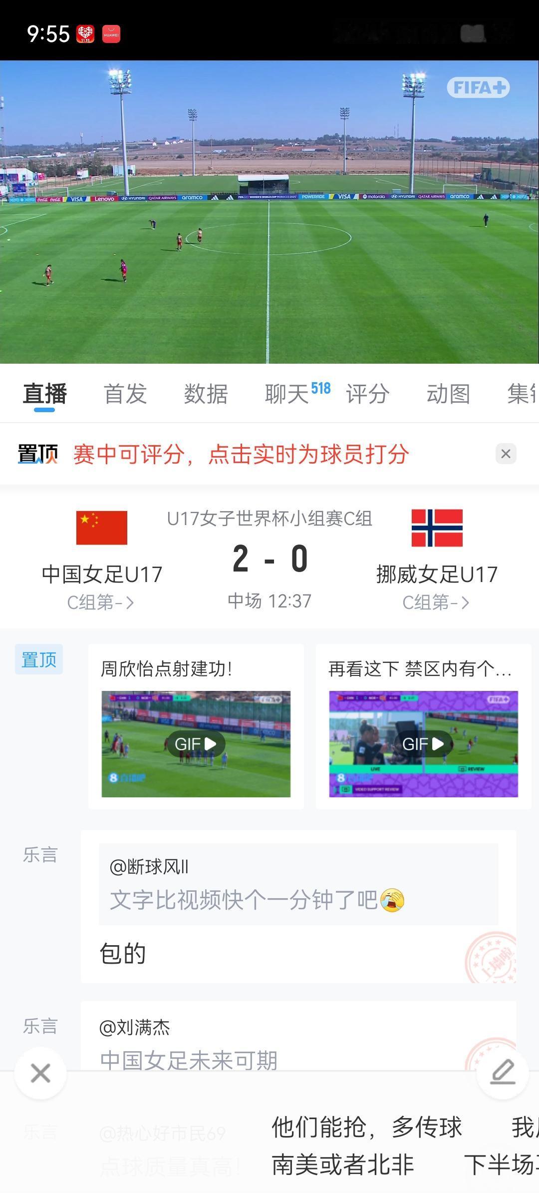U17女足世界杯中国2比0领先挪威!国内竟然没有任何机构转播,真是不受关注的孩子最争气!直播吧可以看到fifa转播信号,大家赶紧到直播吧看吧[呲牙]毕竟中国足球能在世界杯赢球可是很难的!U17女足世界杯也是世界杯啊。