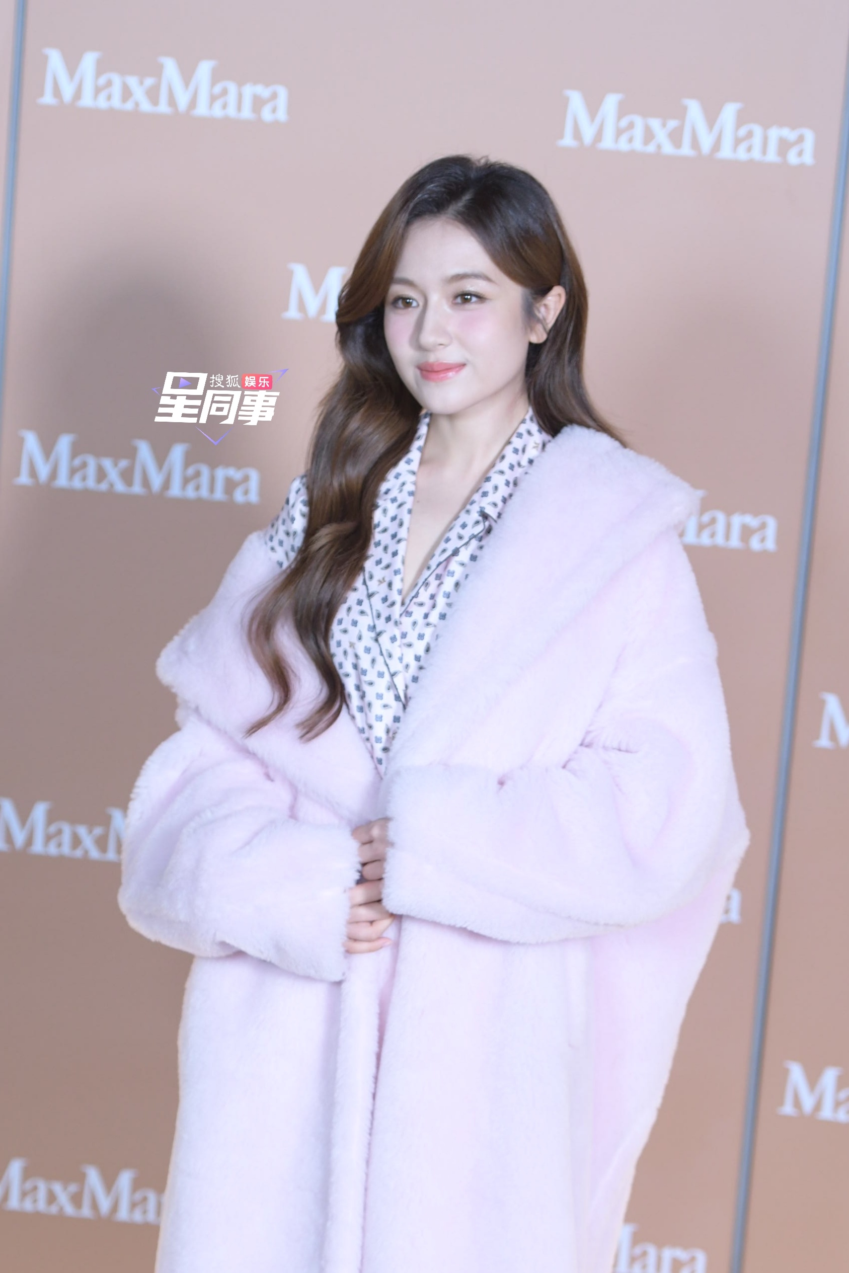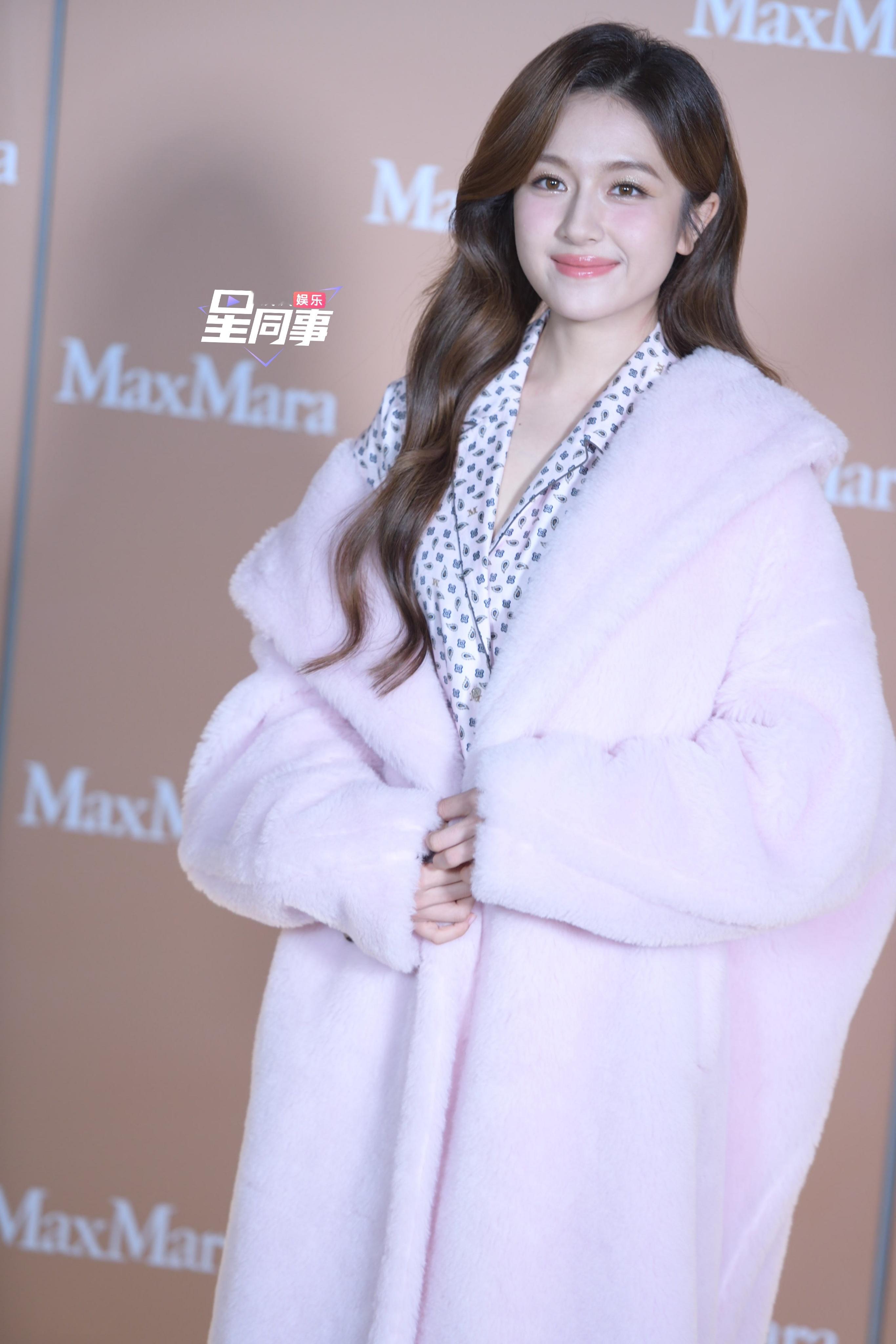 今日Maxmara活动生图来袭!粉色毛绒外套搭配松弛感拉满的内搭~这个landy状态好到爆![awsl]