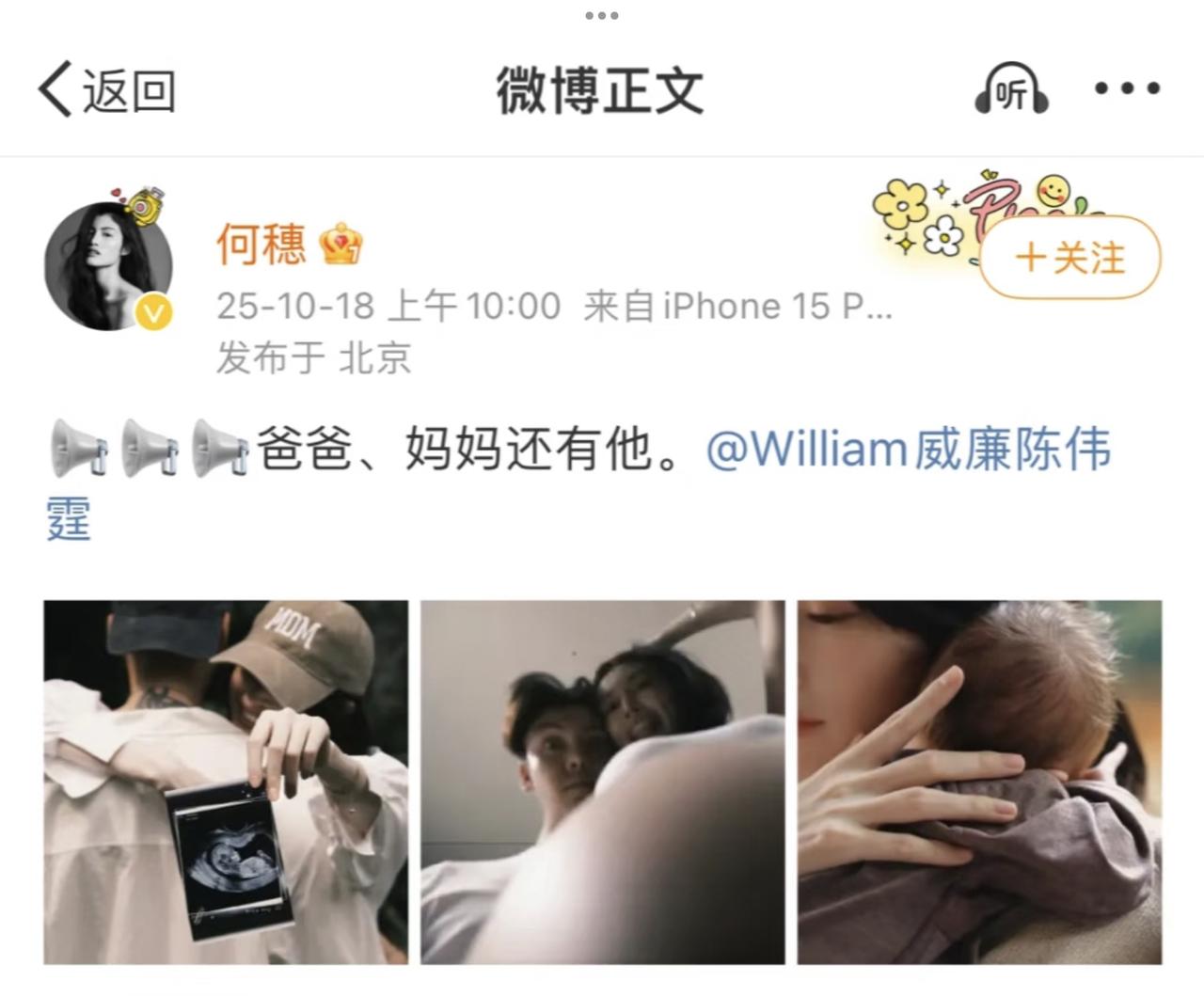 闷声干大事还得是这两位,B超照片和真小孩一起发…… 好命哥陈伟霆和何穗直接升级