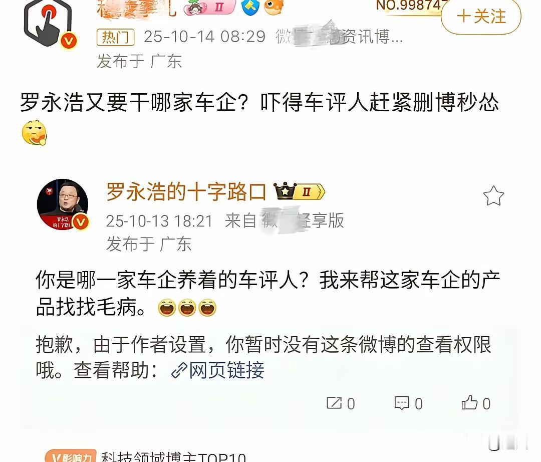 老罗评价“车评人”,秒怂! 某车评人想要擦边西贝后,沾点老罗。结果老罗直接绕开