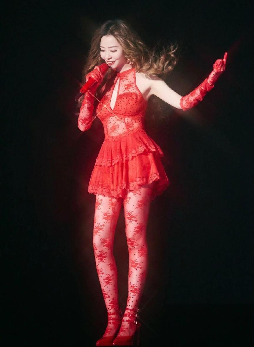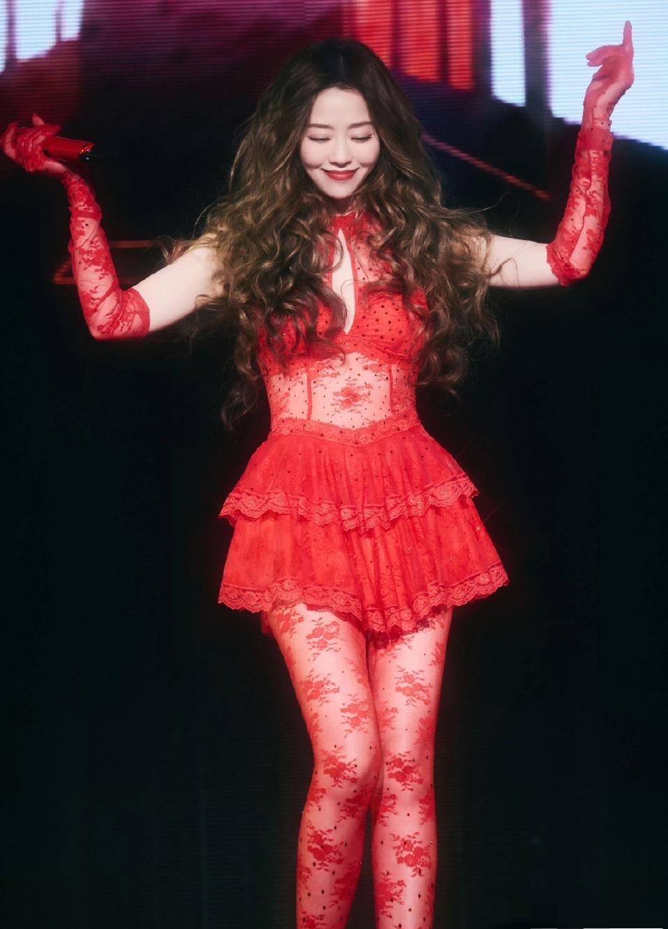 张靓颖这一套红色蕾丝透明战衣, 让人尴尬的脚趾扣出四合院。[泪奔] 这不是顶级魔魅, 这是穿错衣服了吧? 说实话,这样的衣服适合家里穿,而不适合上舞台。