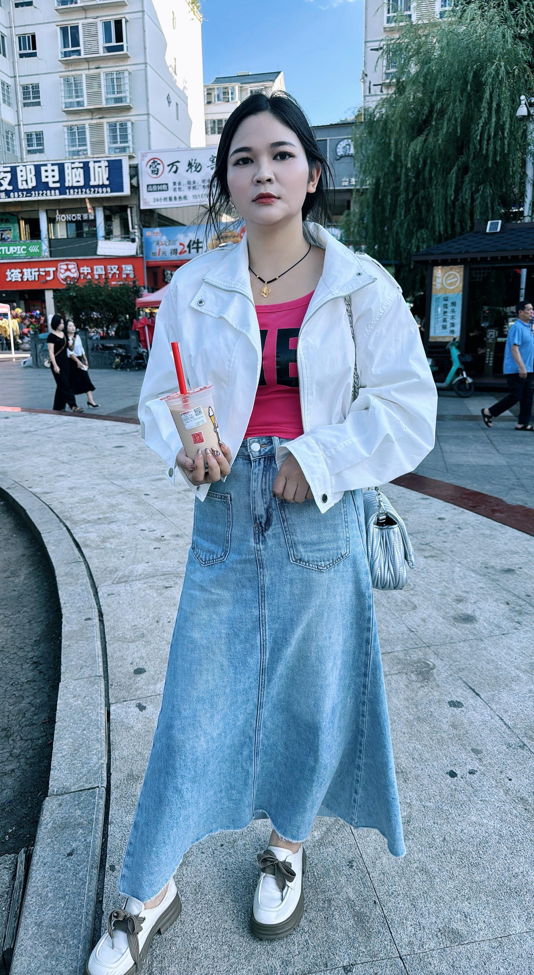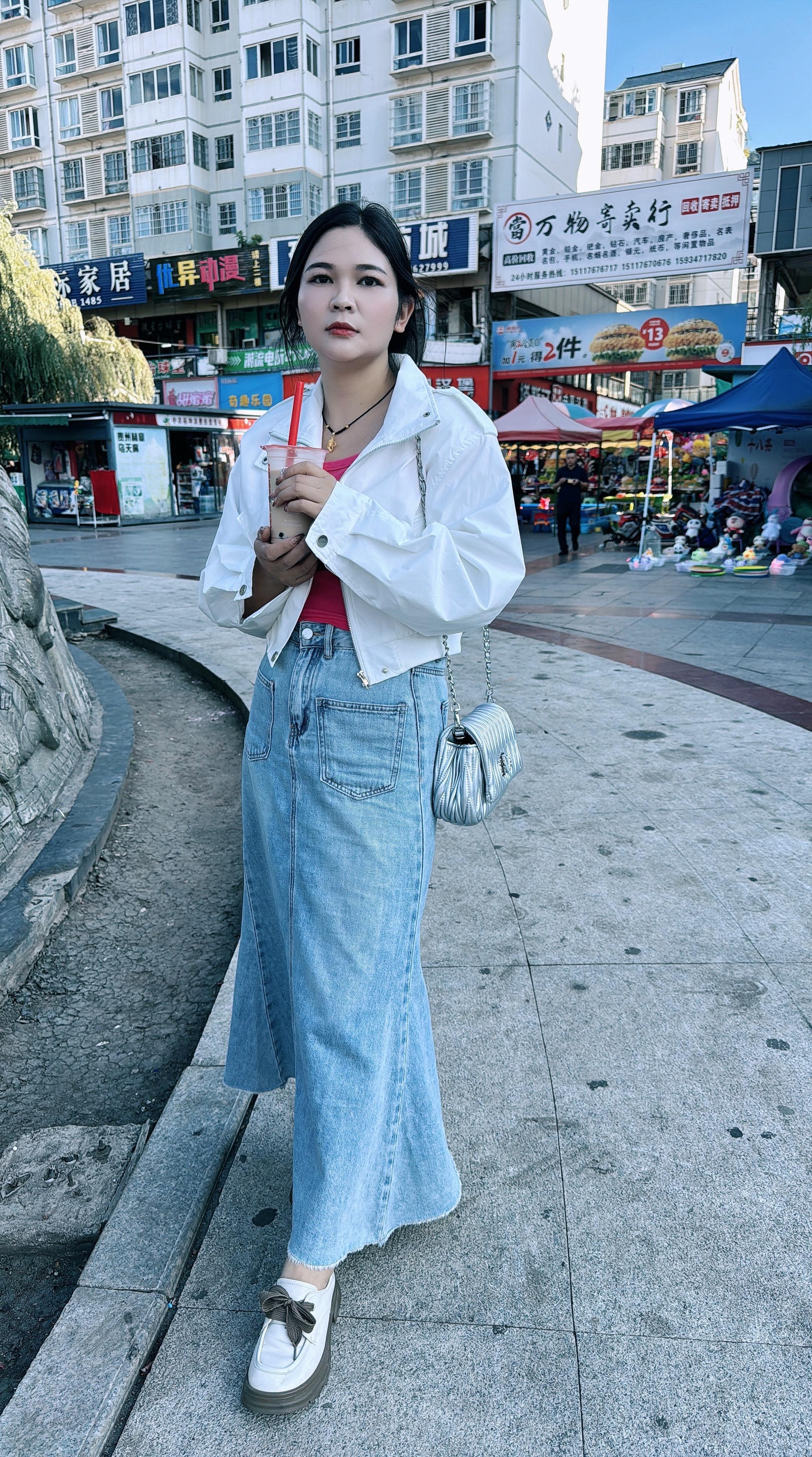 都市时尚穿搭,简约白衬衫搭配牛仔裤,轻松自在。微胖的女生怎么穿搭才可以遮肉?
